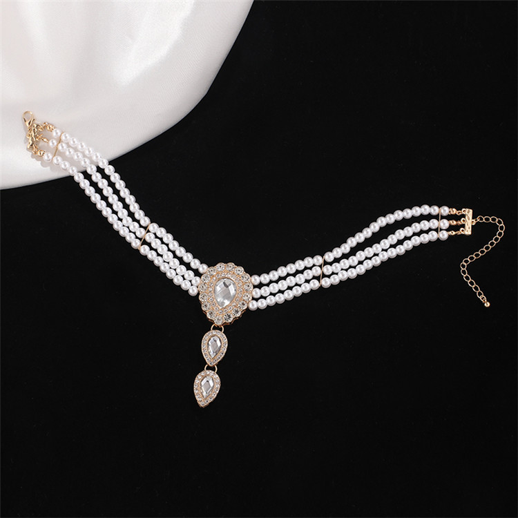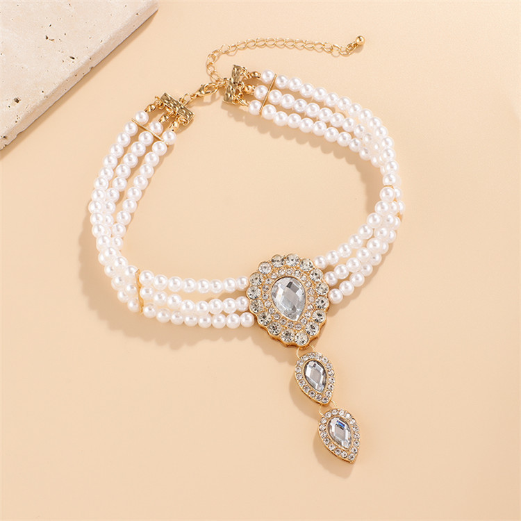 Diamond Drop Pearl Layered Necklace