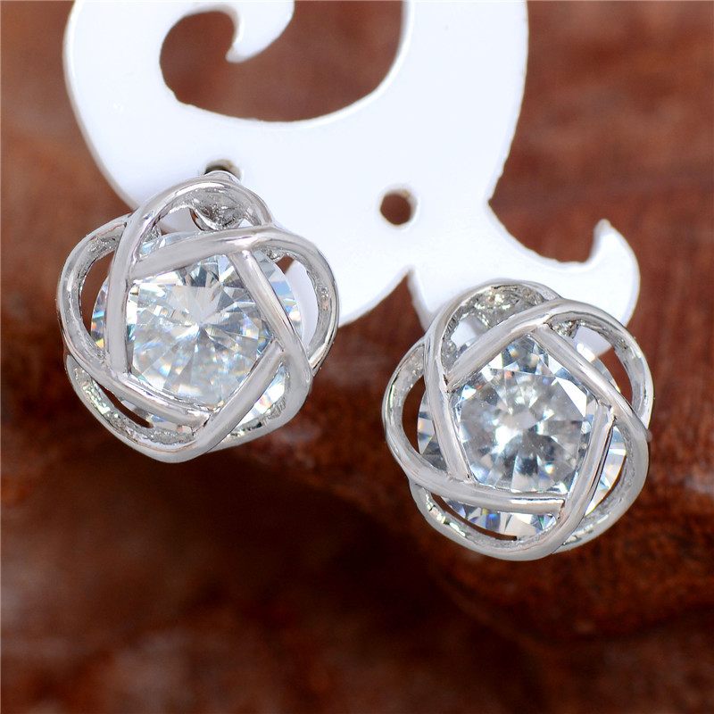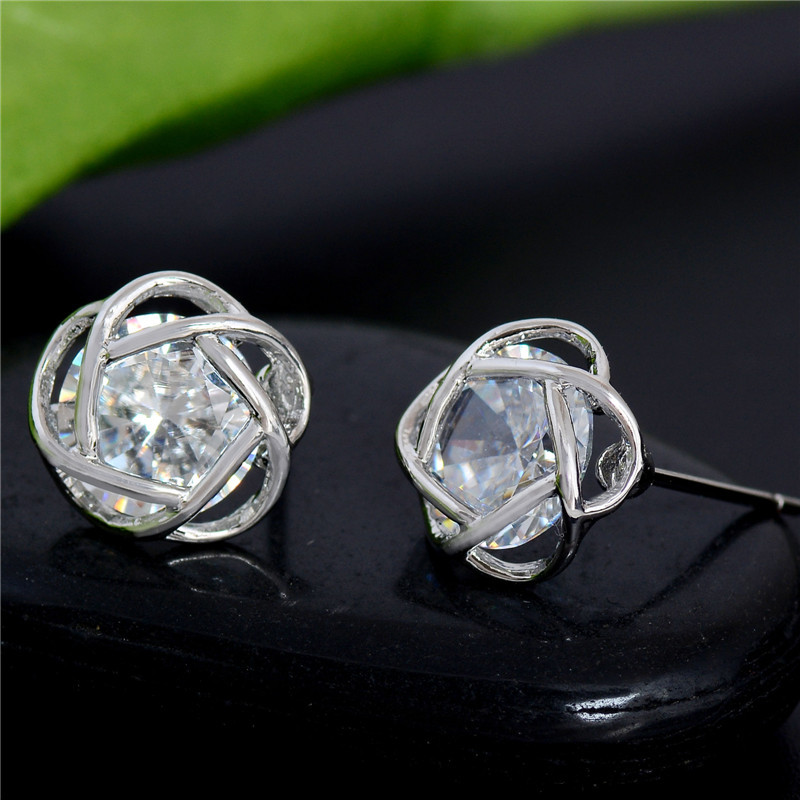 Stud earrings gold-plated openwork rose gold zircon fashion exquisite Korean earrings