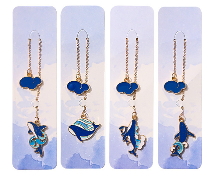 Exquisite Literature And Art Metal Pendant Bookmark Little Fresh Blue Whale Cute Creative Student