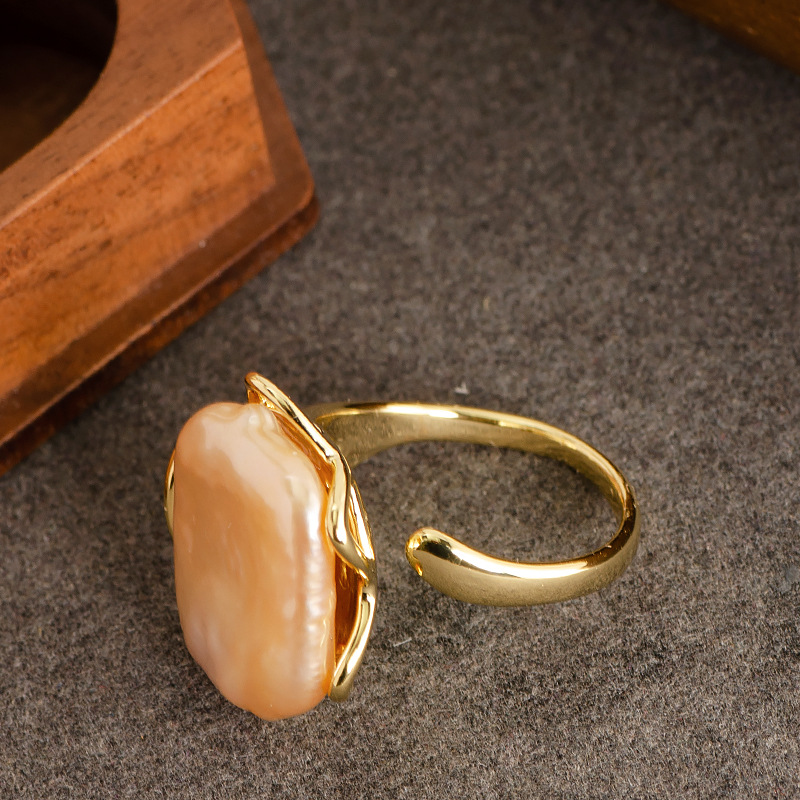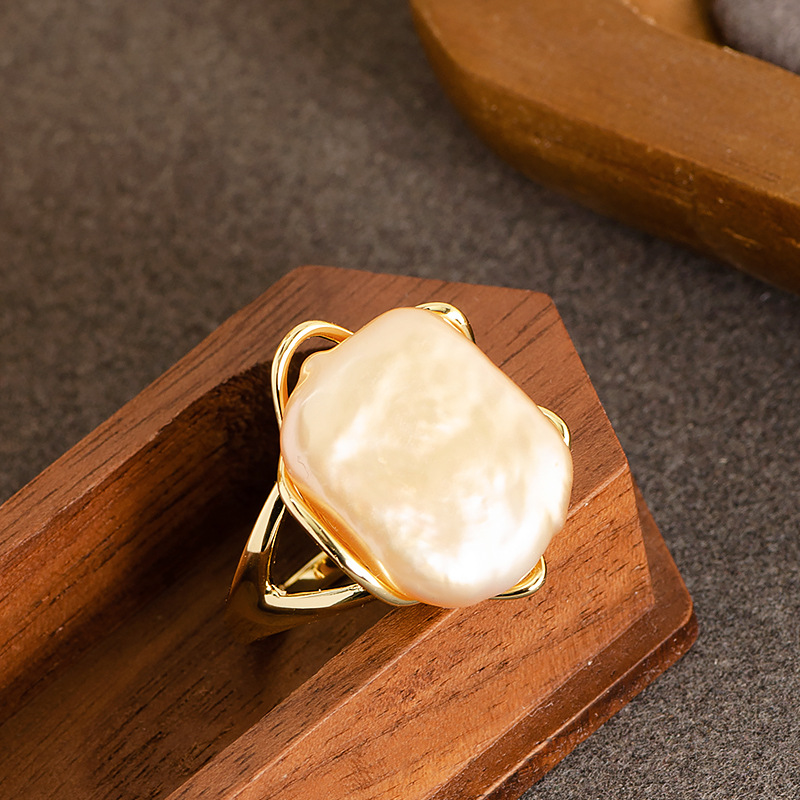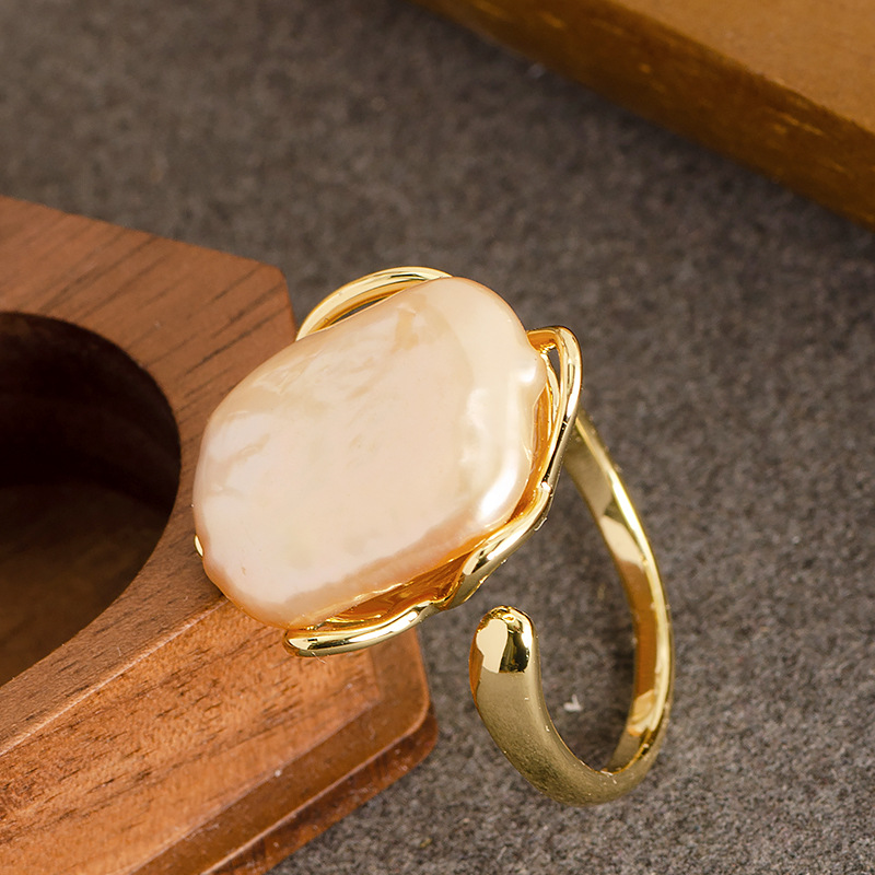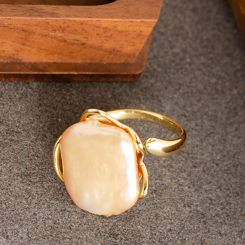 Product information:Type: open mouth Treatment Process: Electroplating Color: GoldSize: adjustable opening Style: split ring Material: Copper Shape: Geometry Popular elements: Pearl Style: Retro