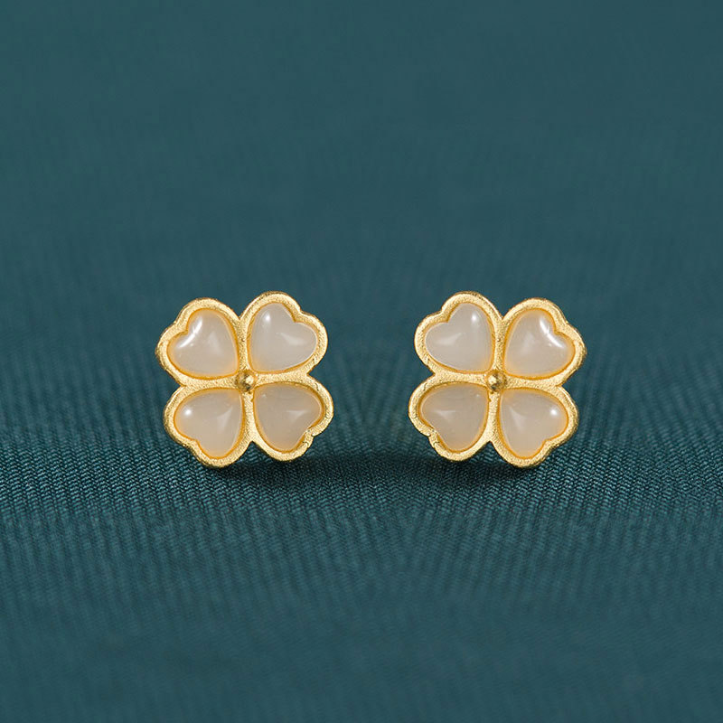Color: imitation white jade silver stud earrings pair, imitation Jasper silver stud earrings pair