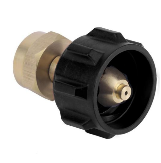Insert the tip of the adapter nose into the 20-50 lb barbecue propane tank filling connection