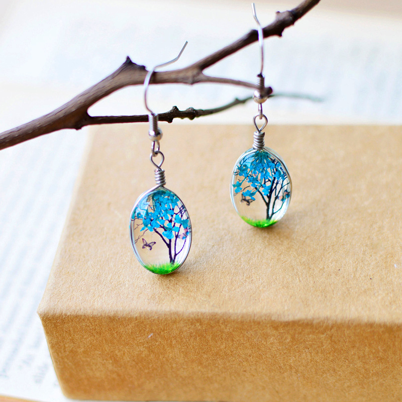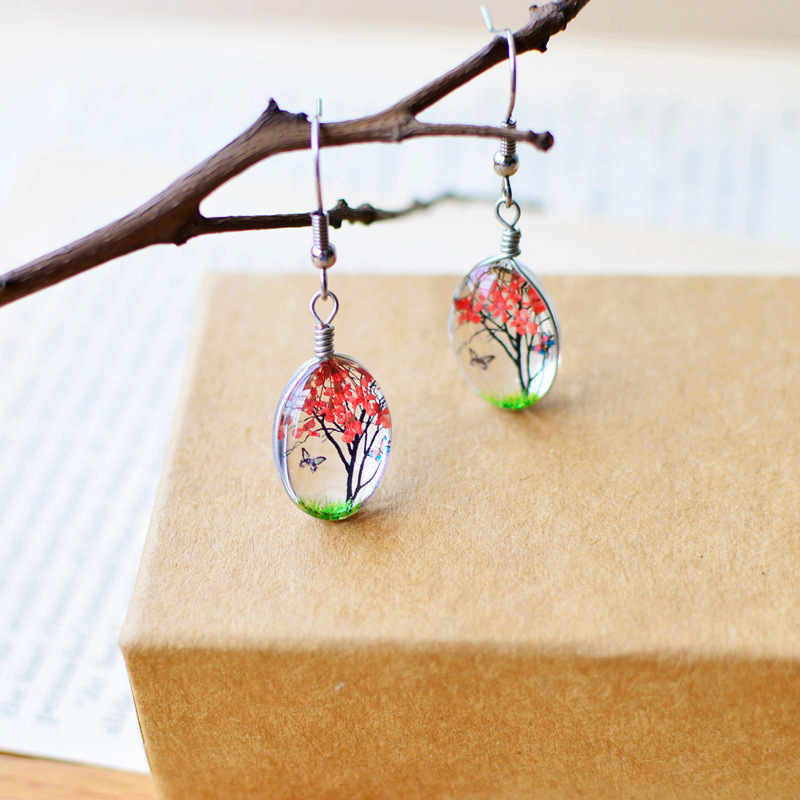 Material: steel hook + glass + dried flowerStyle: Women'sShape: geometricColor: red, purple, green, blue, pink