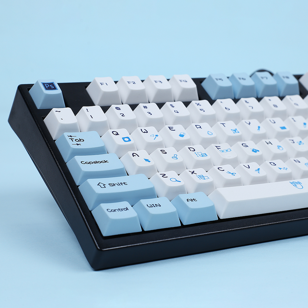 Color classification: A: 108-key PS theme blue and white sublimation keycap B: 108-key PS theme gray and white sublimation keycap C: supplementary key rgbk color 10 key supplementation D: supplementary key cmyk color 10 key supplementation