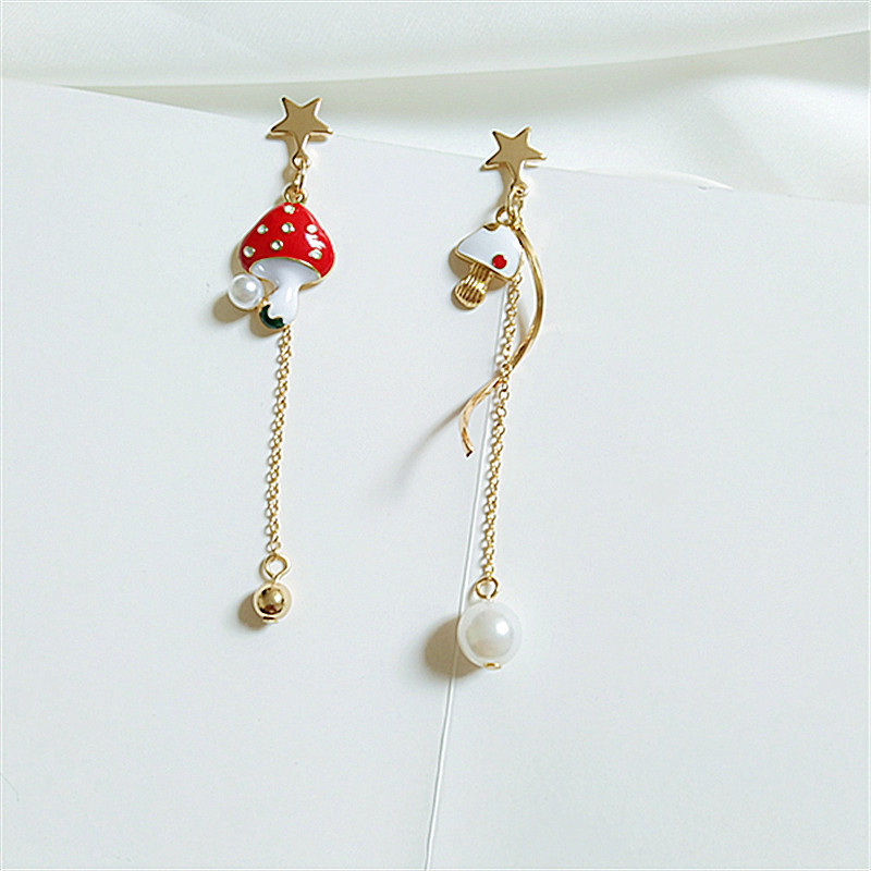 Sterling Silver Needle Star Ear Studs Mushroom Asymmetry