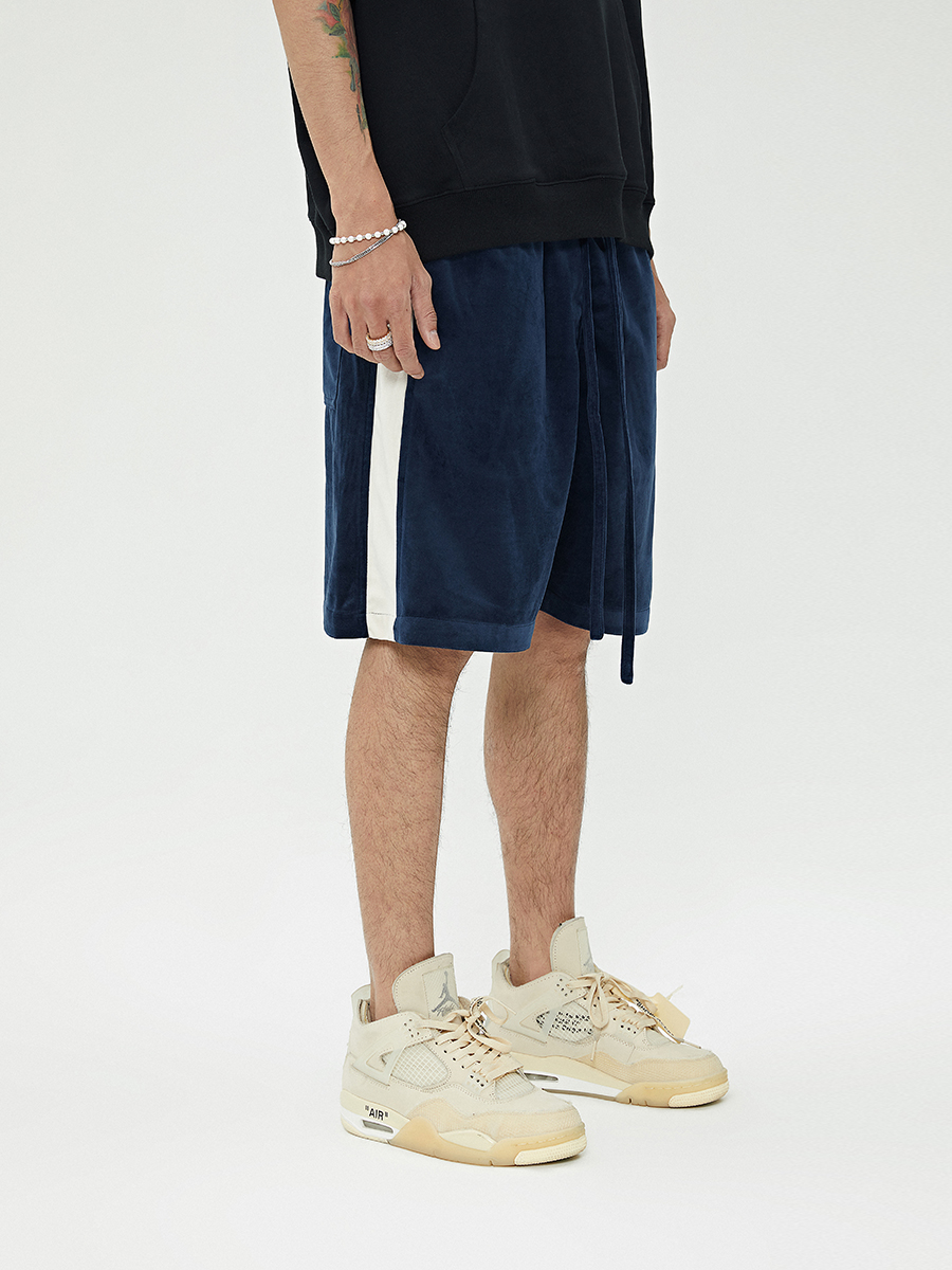 Side stripe stitching velvet shorts*1