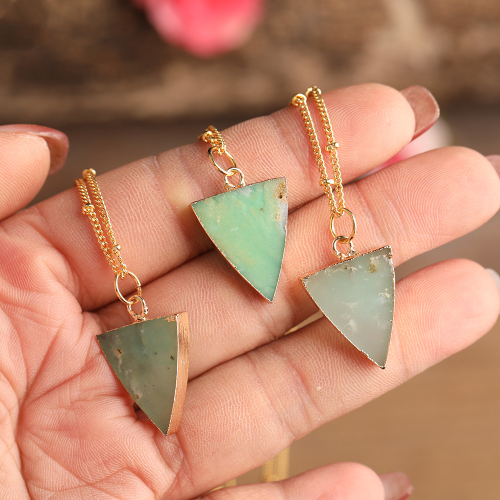 Natural Australian Jade Necklace Triangle Pendant
