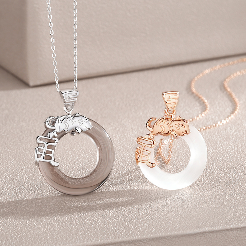 Color: cute tiger peace buckle necklace for men, cute tiger peace buckle necklace for women