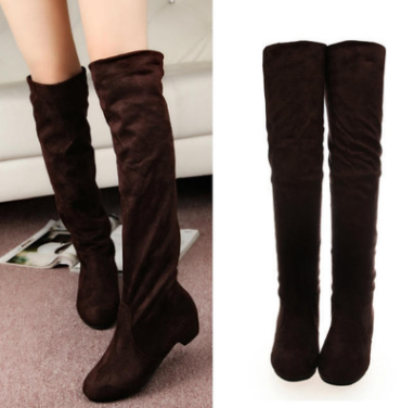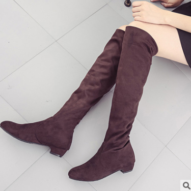 Autumn and winter new European and American over the knee stretch boots low heel suede wear women's shoes skinny legs foreign trade women's boots wholesale