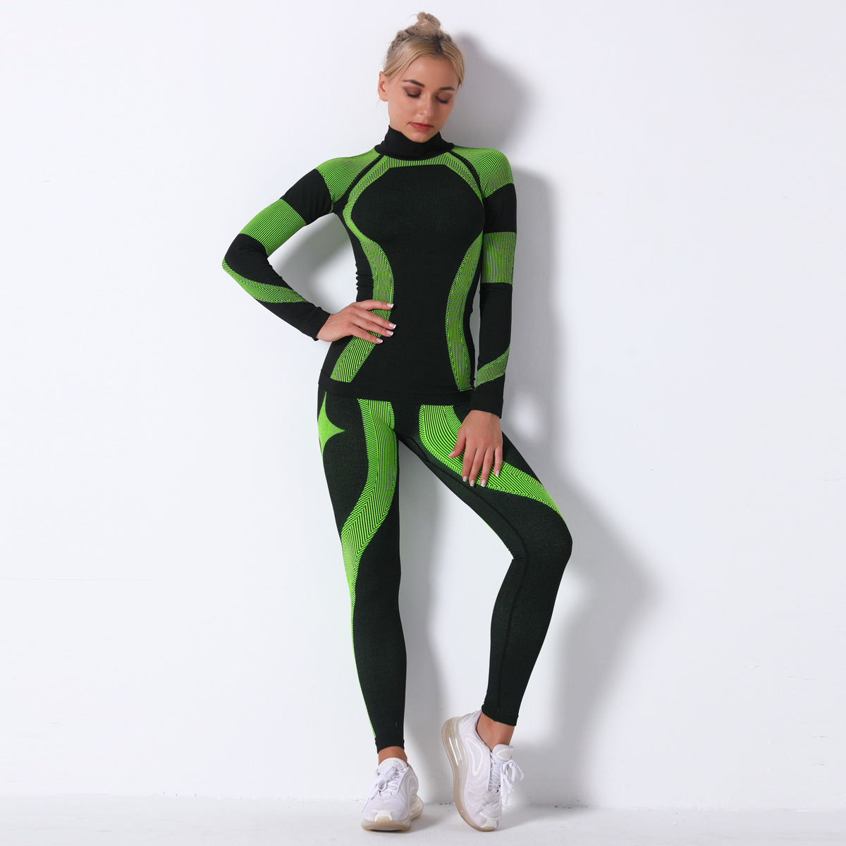 Color: 9185 Long Sleeve Pants Set-Black Fluorescent Green, 9185 Long Sleeve Pants Set-Black Bottom Rose Red, 9185 Long Sleeve Pants Set-Black Bottom White, 9185 Long Sleeve Pants Set-Black Bottom Royal Blue, 9185 Long Sleeve Long Pants Set-Black Bottom Lake Blue