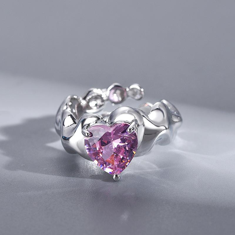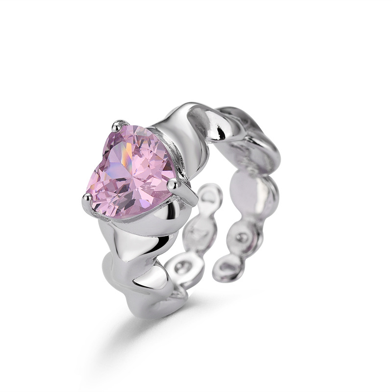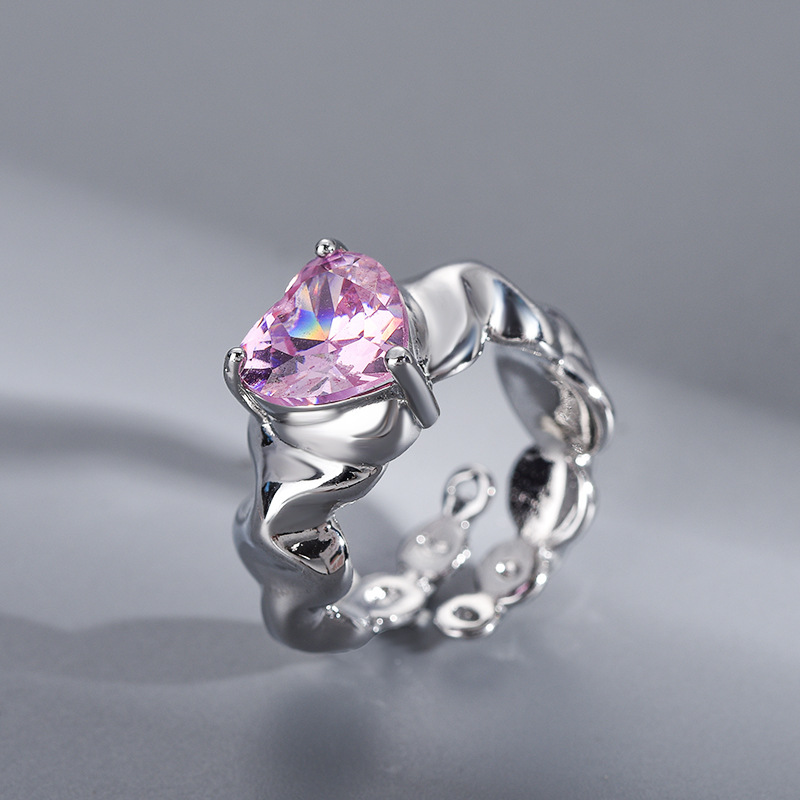 Product Details:Type: RingMaterial: CopperShape: heart shapeTreatment process: electroplatingStyle: Women'sColor: white goldSize: Opening adjustable