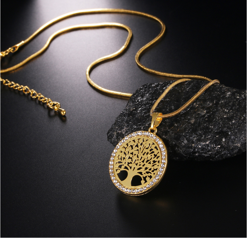 Explosion Models Europe And America Necklace Life Tree Long Necklace Chain Crystal Pendant Long Life Tree Sweater Chain