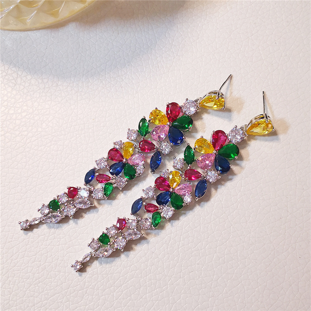 Material: AAA zircon environment-friendly copper plated 18k gold and silver needleSize: 8.2cm * 1.9cmProcess: micro inlay process
