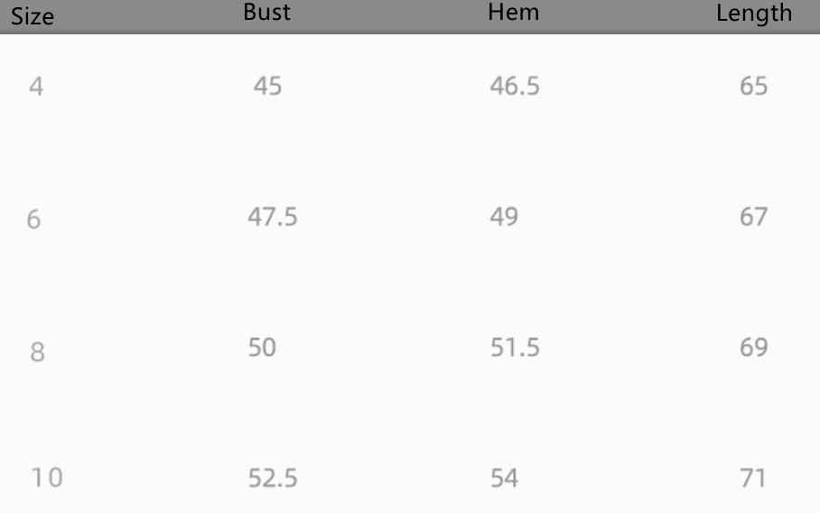 Size: 4, 6, 8, 10 unit: cm