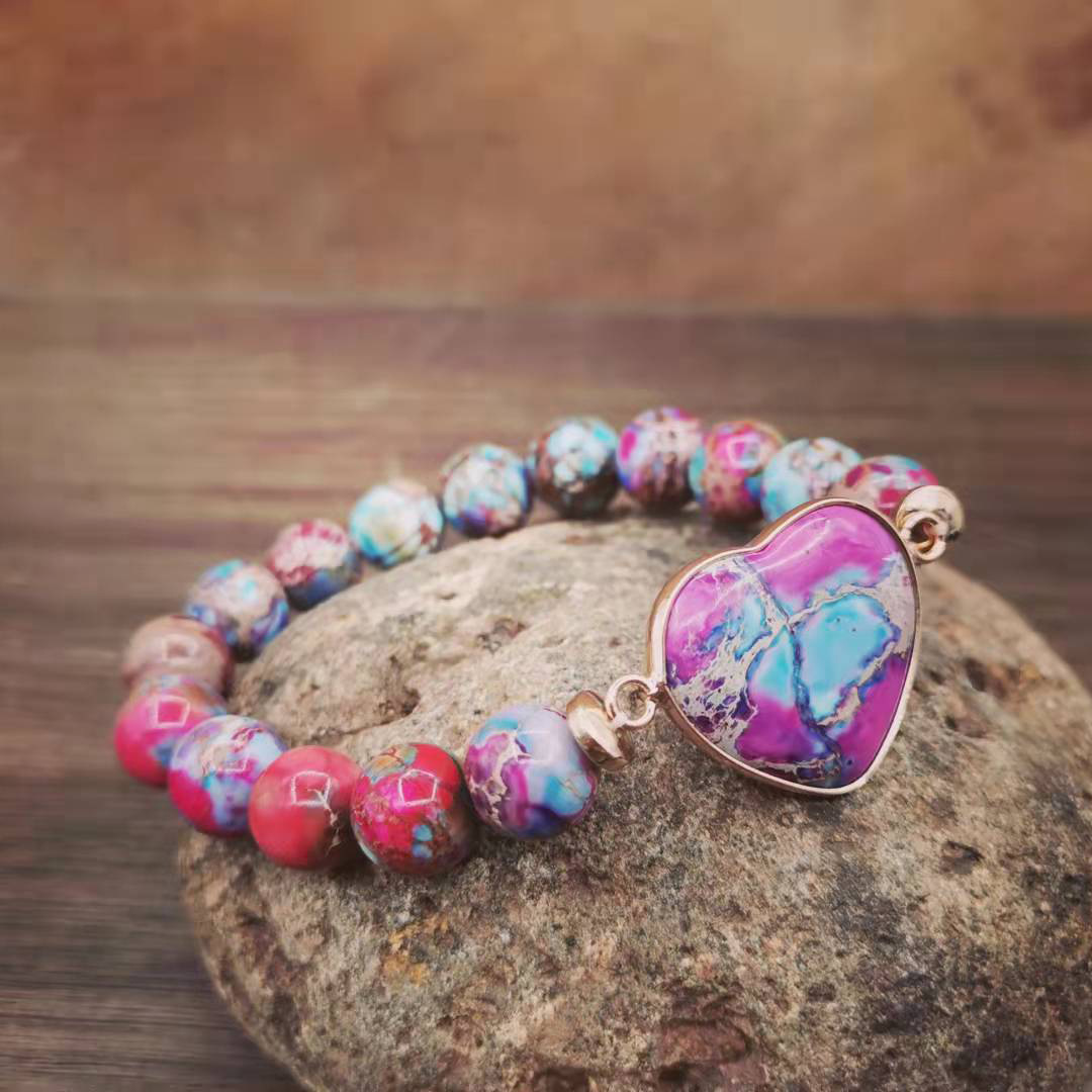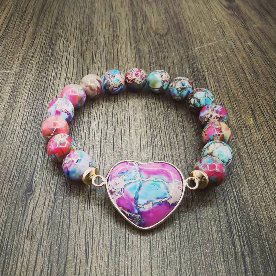 Style: National styleMaterial: Semi-precious stonesType: BraceletStyle: Women'sShape: Heart shapeInlay material: alloy inlaid artificial gems/semi-precious stonesPopular elements: ethnic