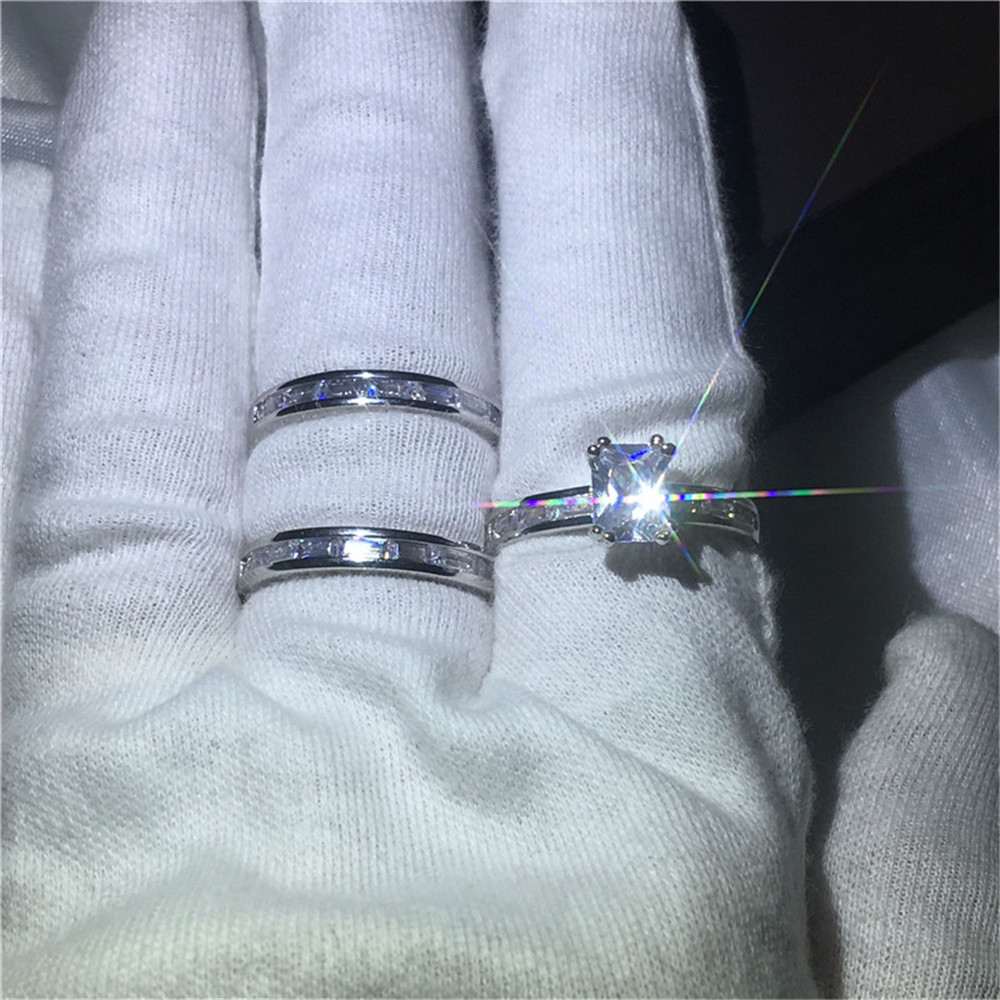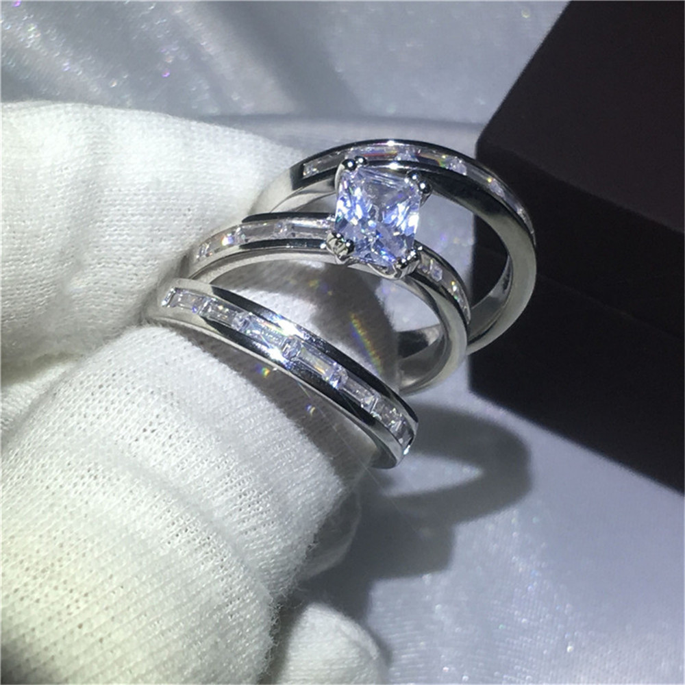 European and American explosion models ladies wedding ring ring 3 in 1 zircon ring