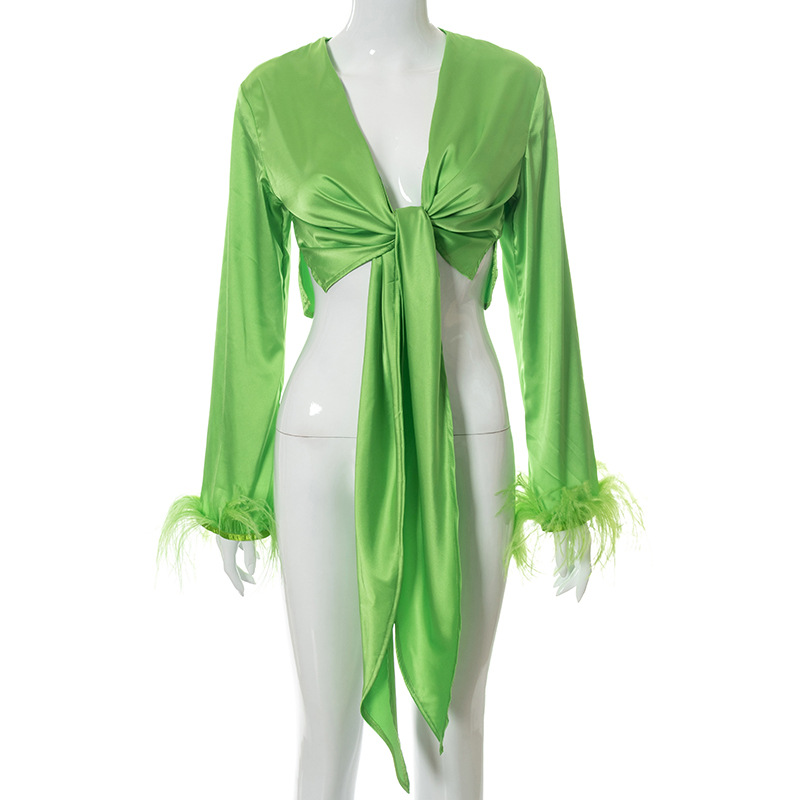 Color: green Q21TP496, light blue Q21TP496, medium size 130g, 95% polyester 5% spandex, feather effect please refer to the actual shot