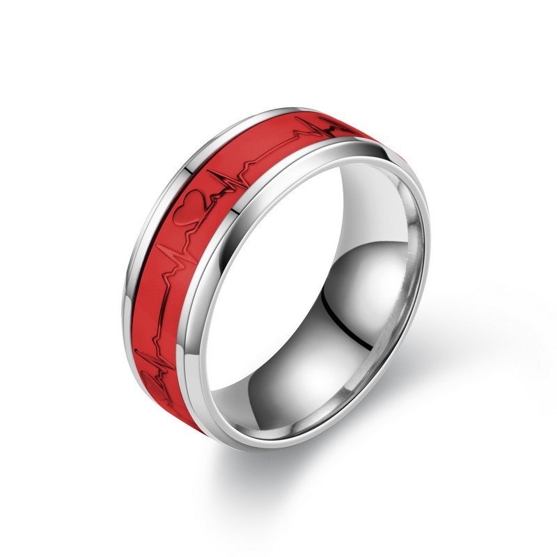 Product Information:Type: RingMaterial: stainless steelShape: Geometric typeColor: Yellow, red, purple, green, blue, black, milky whiteSize :6,7,8,9,10,11,12Width :8MMThickness :2MMPacking list:Ring X1PCS
