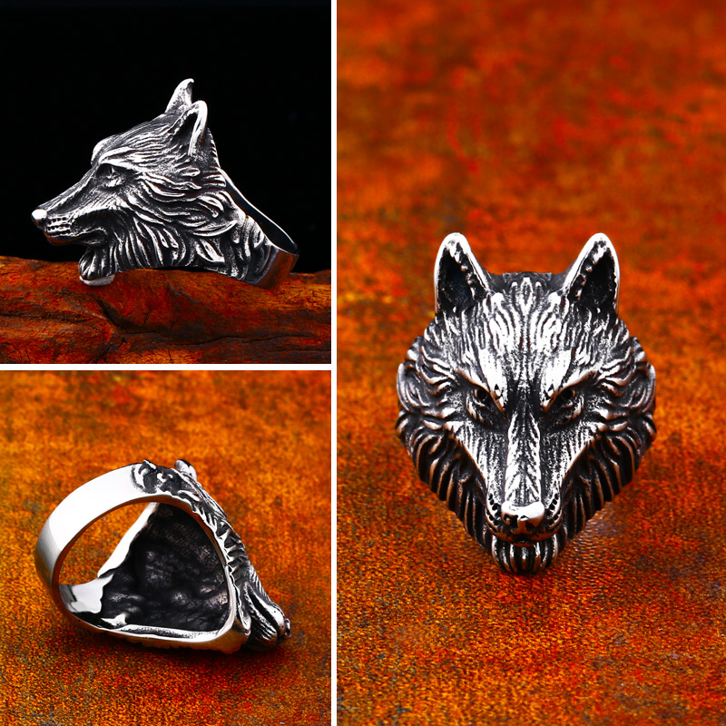 Viking wolf head ring