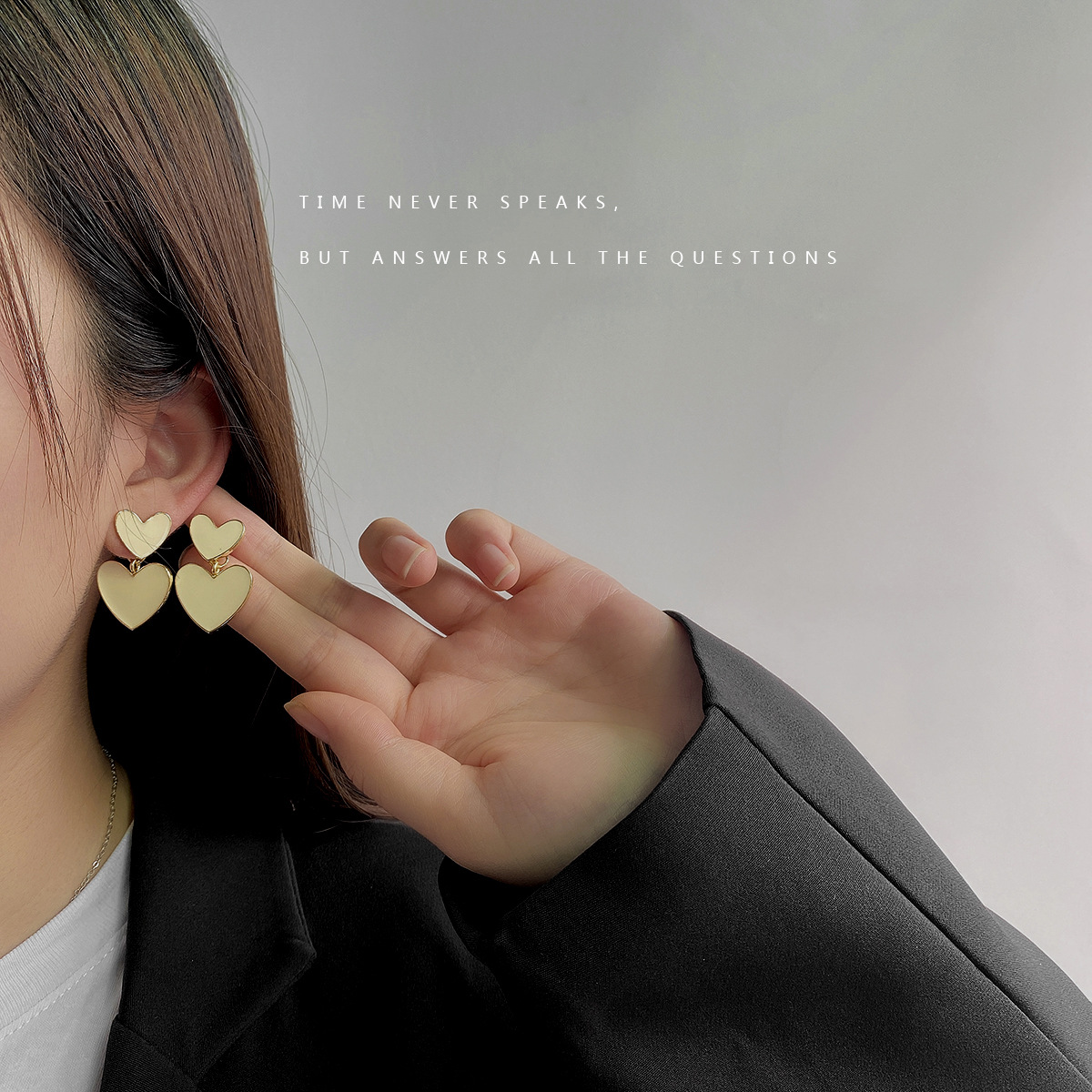 Two White Love Earrings Female Ins Style Korean Style Temperament