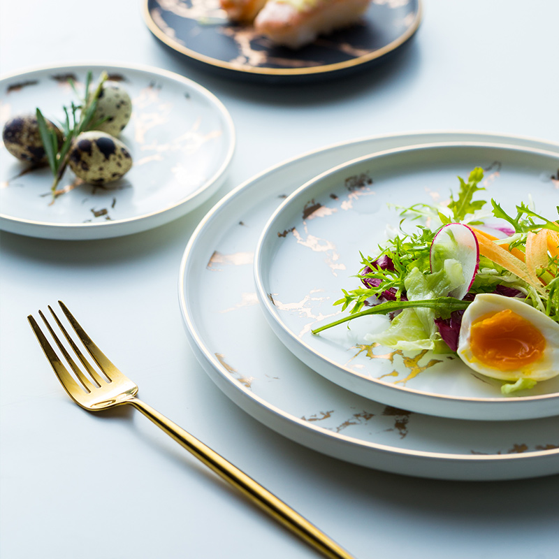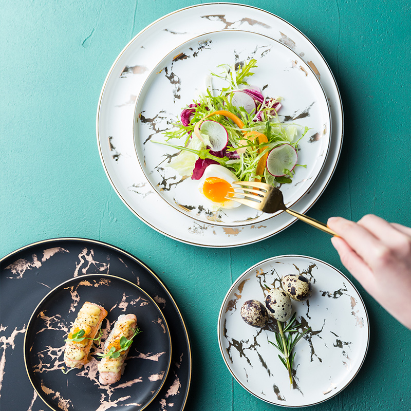 European vintage style 8 inch dessert salad snack steak plate dinner charger marble ceramic plate