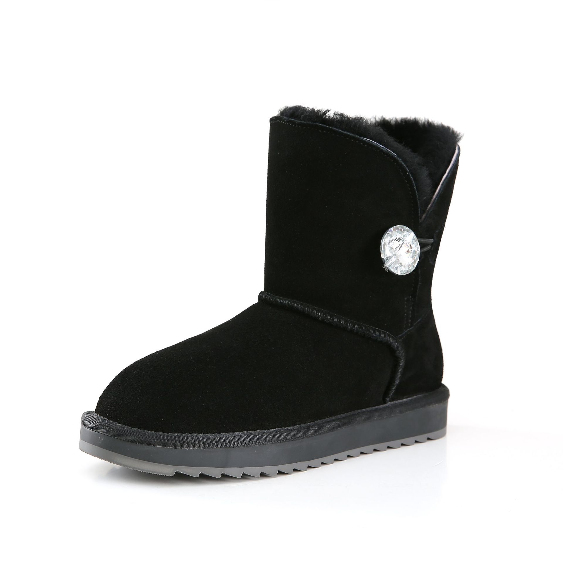 Fur integrated leather medium boots and short boots