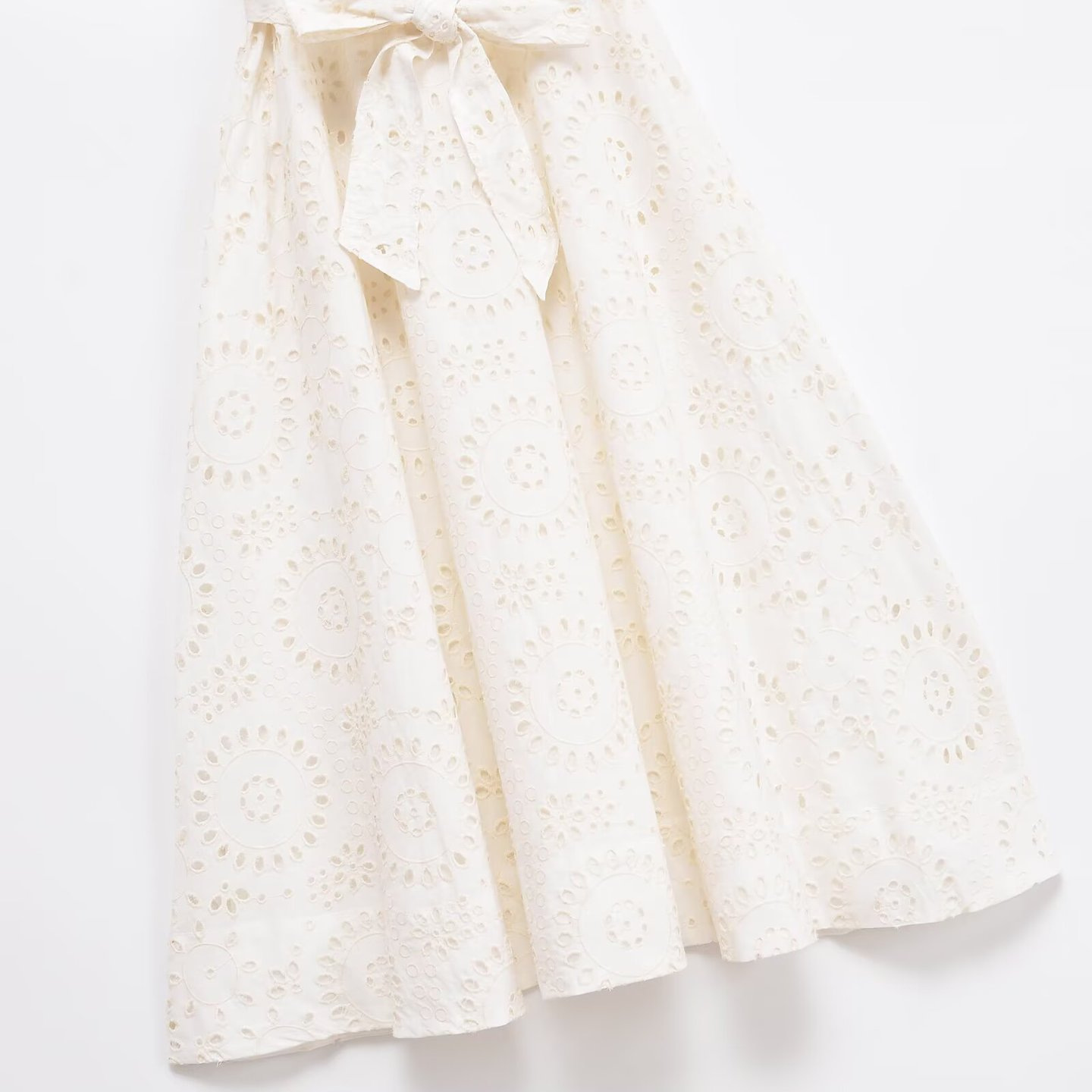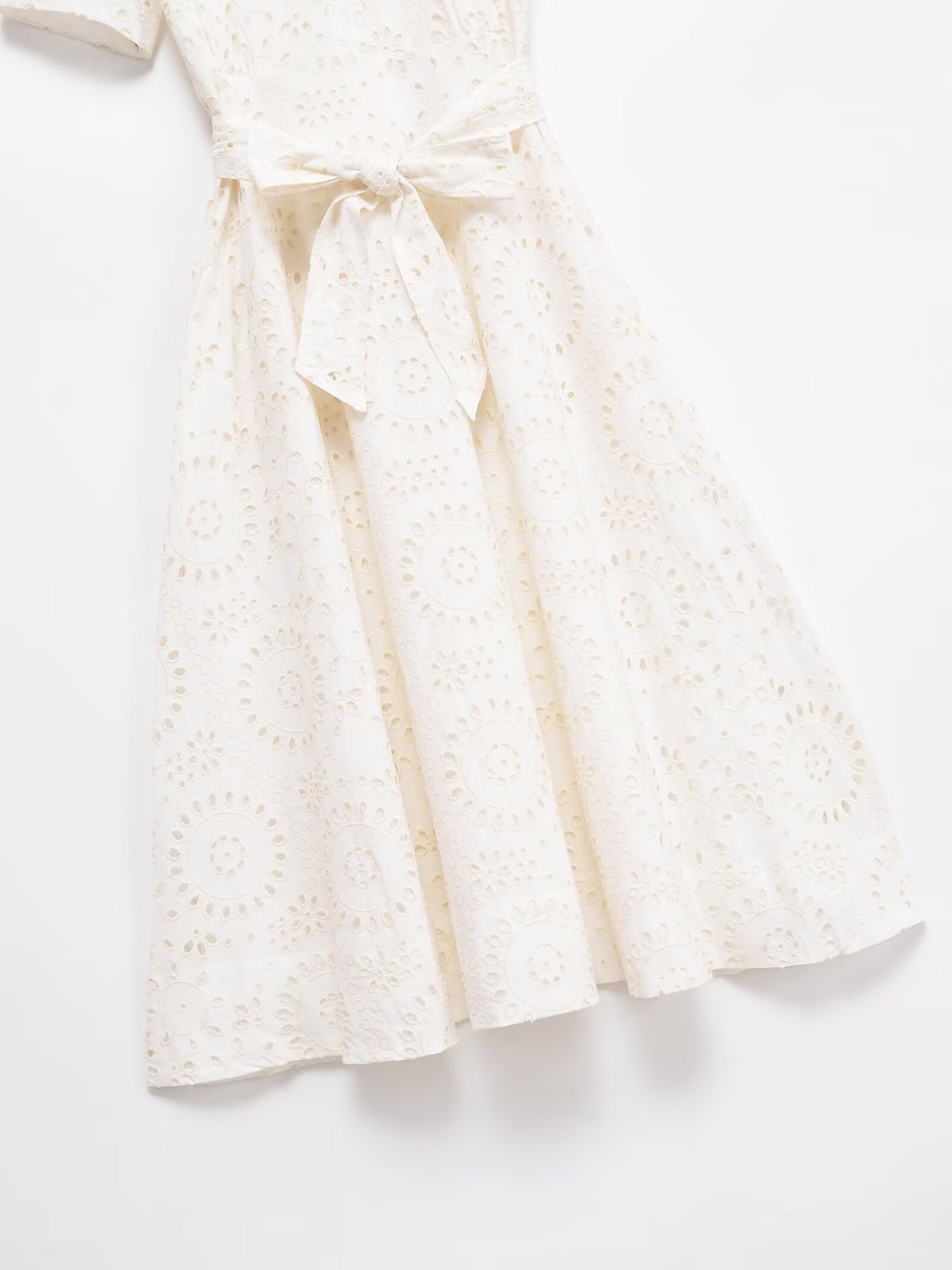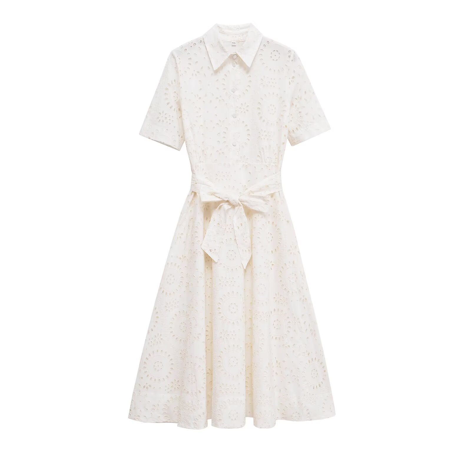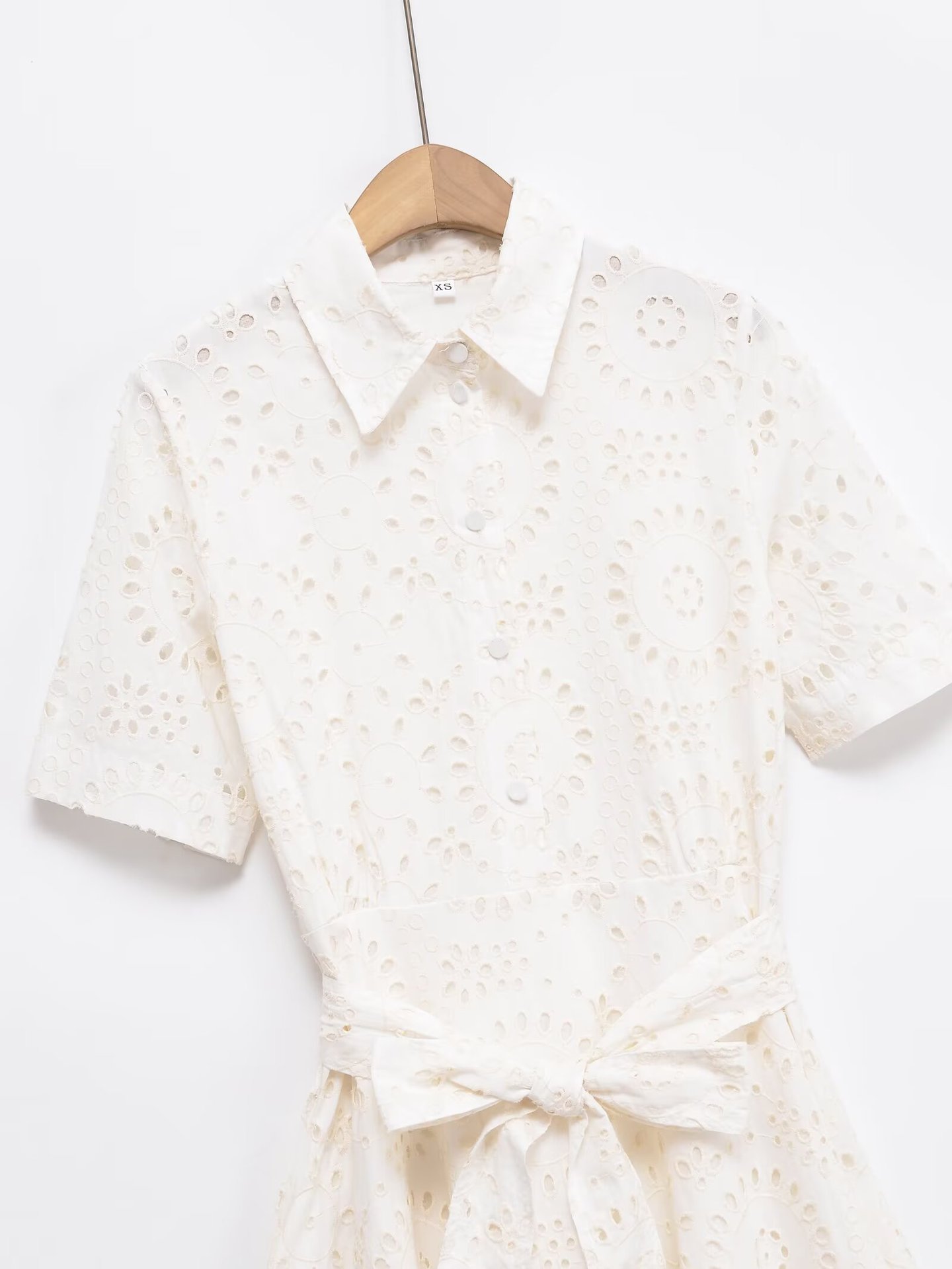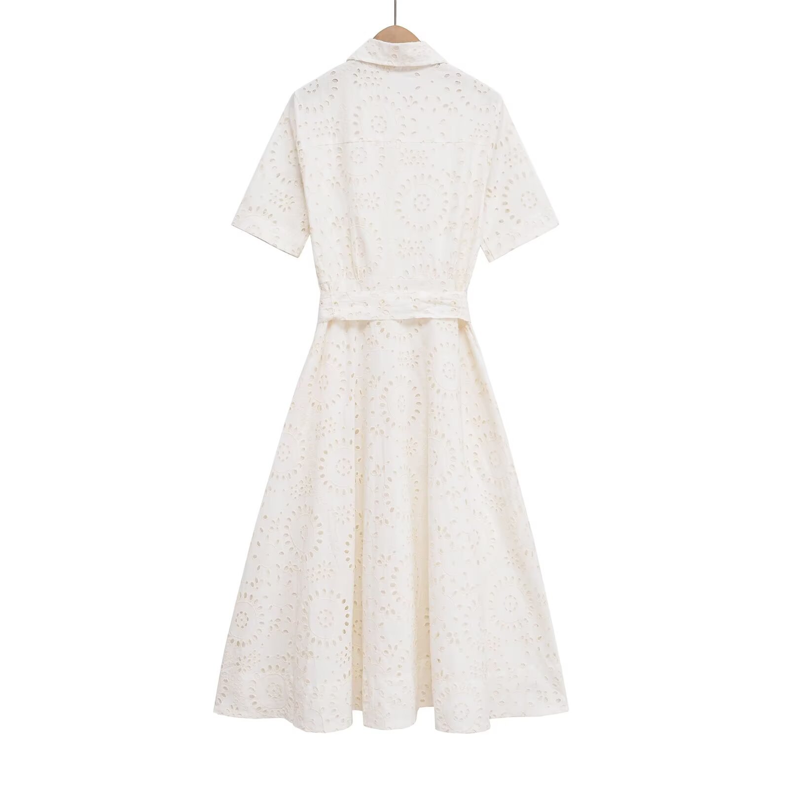 Poplin Shirt-style Lace-up Embroidery Dress