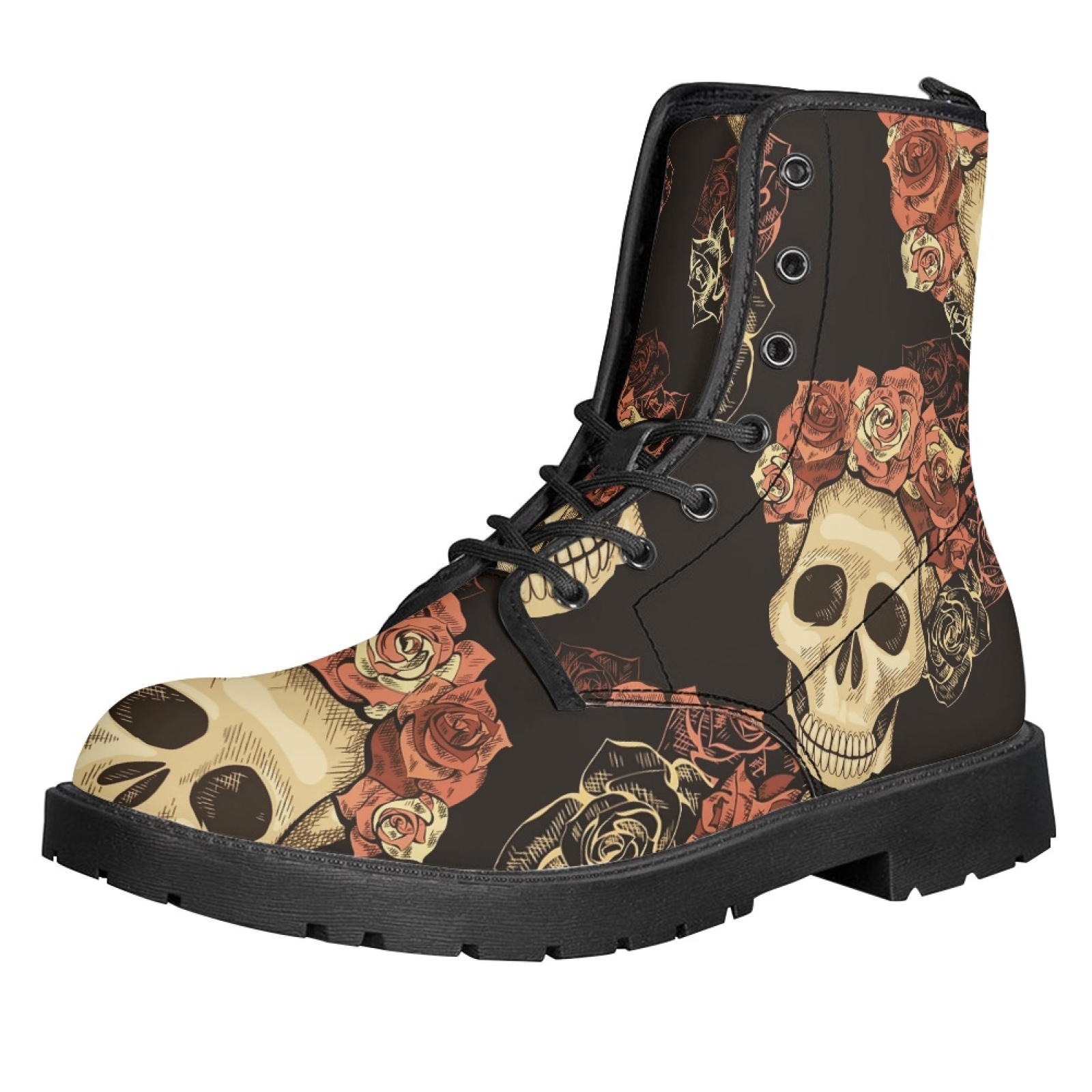 Printed Women's Leather Flat Bottom Low Heel British Martin Boots