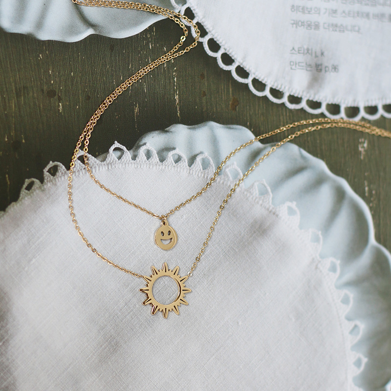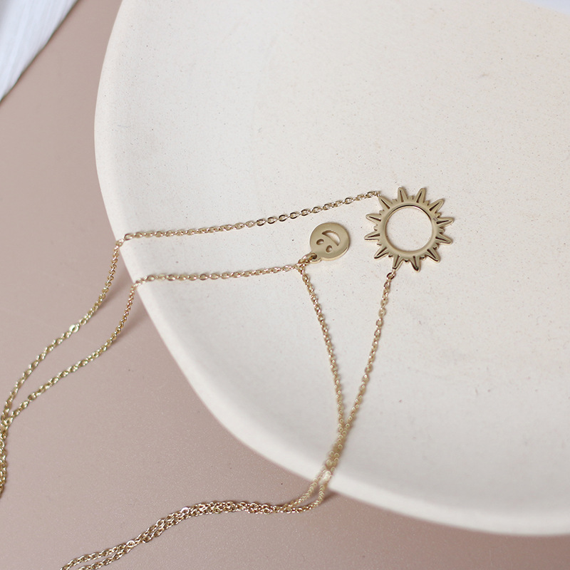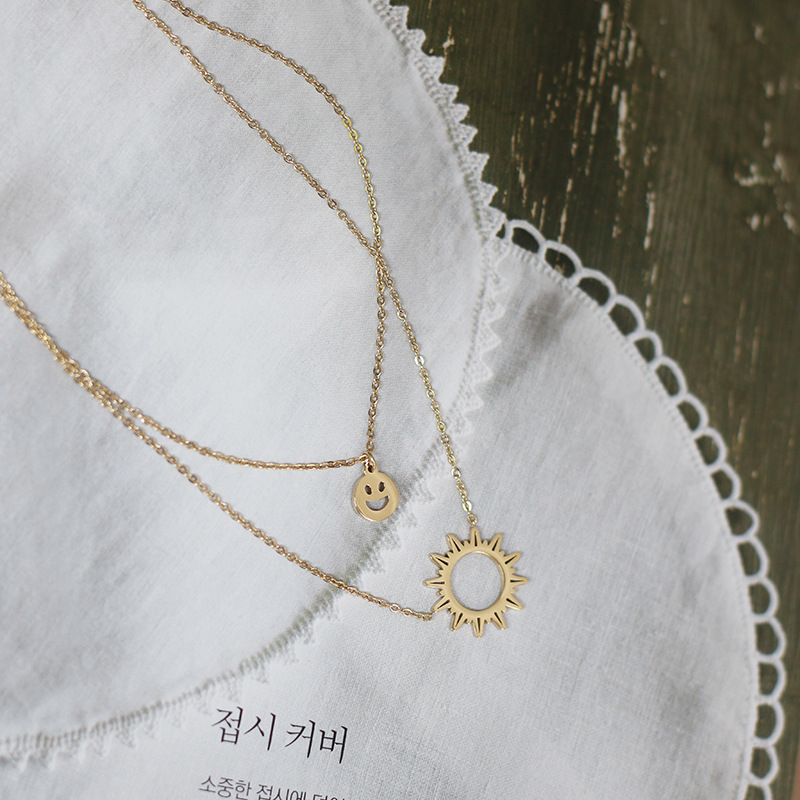 Material: titanium steelSun chain length: 42cmSmile chain length: 40cmSun diameter 1.5cm