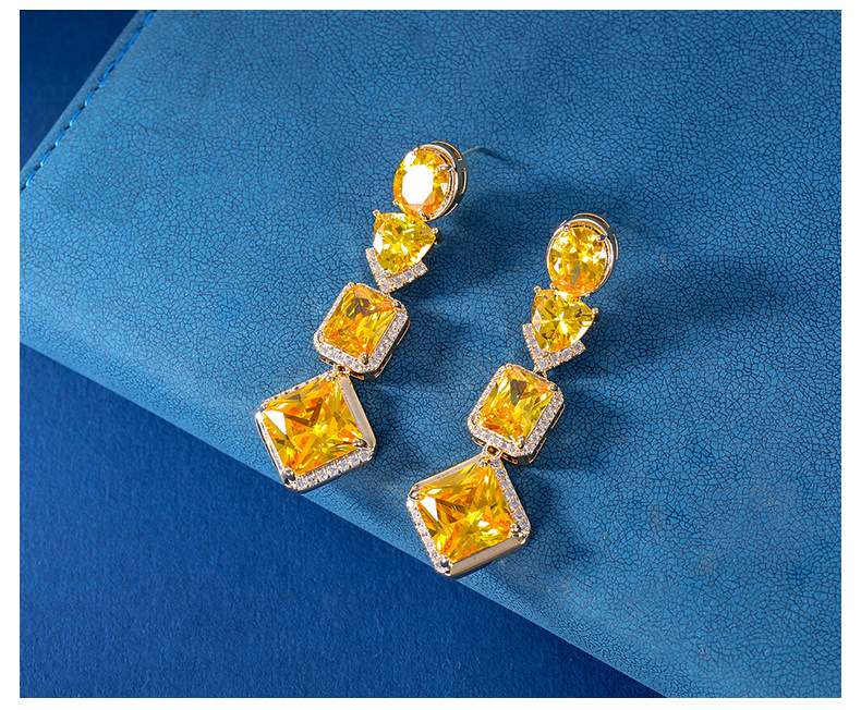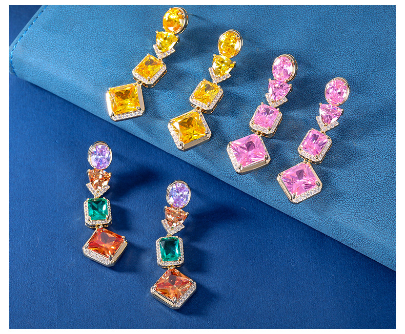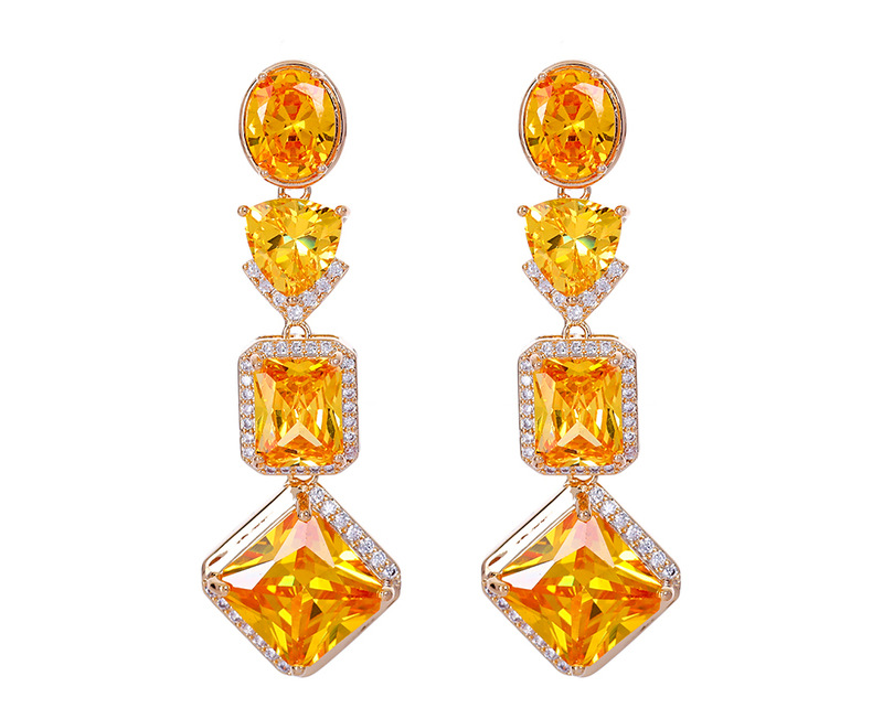 Product information:Treatment Process: Micro inlayColor: yellow, colorful, pinkApplicable people: womenStyle: Women'sMaterial: zirconShape: GeometricPopular elements: round, QuadrilateralStyle: ins style