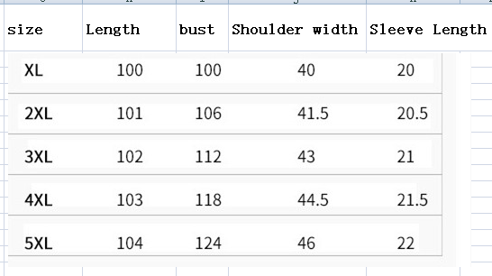 Size: XL, 2XL, 3XL, 4XL, 5XL
