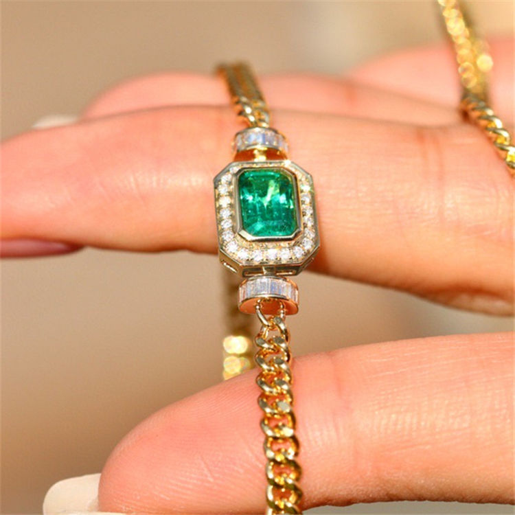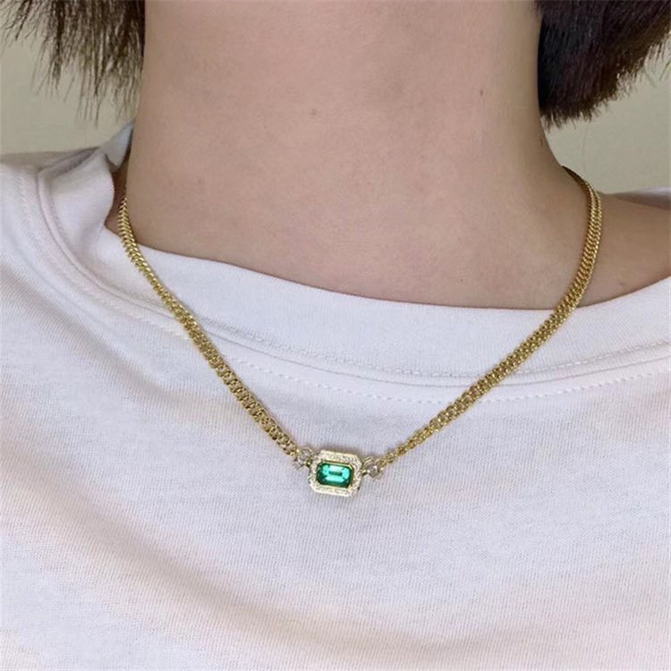 Retro High-grade Emerald Cuban Link Chain Necklace