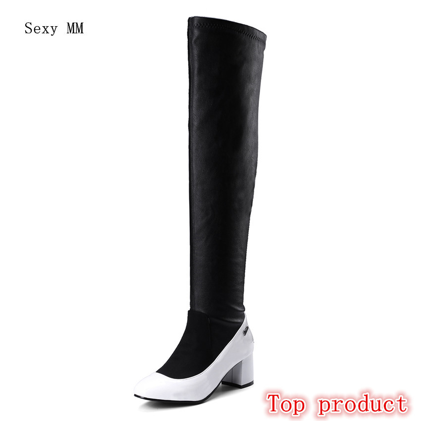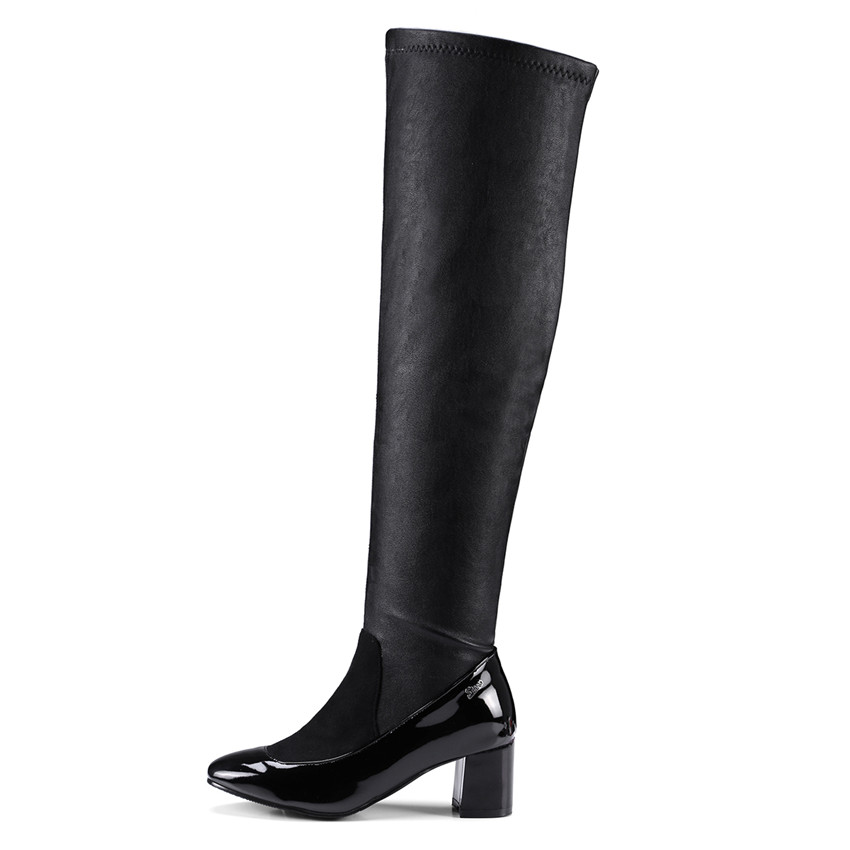 Product Category: Fashion BootsApplicable age: adultUpper material: suedeApplicable gender: femaleStylePopular boots over the knee stretch bootsPopular elements leather stitchingTube height over the knee...