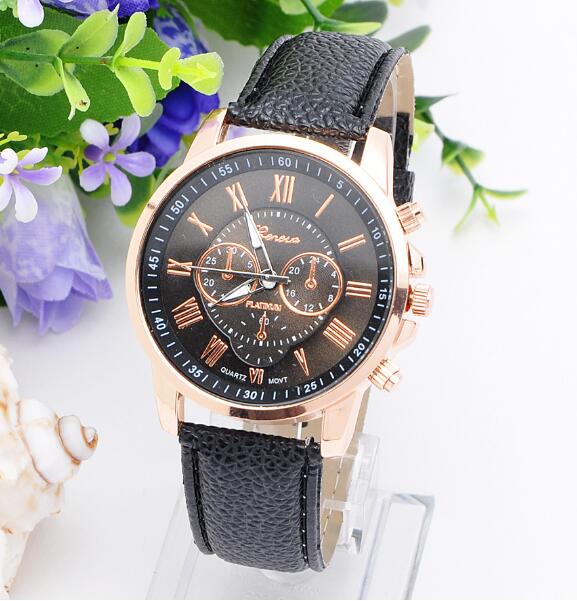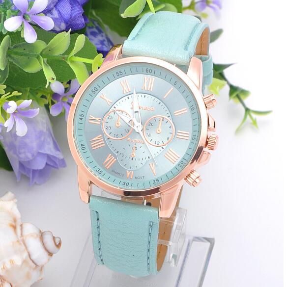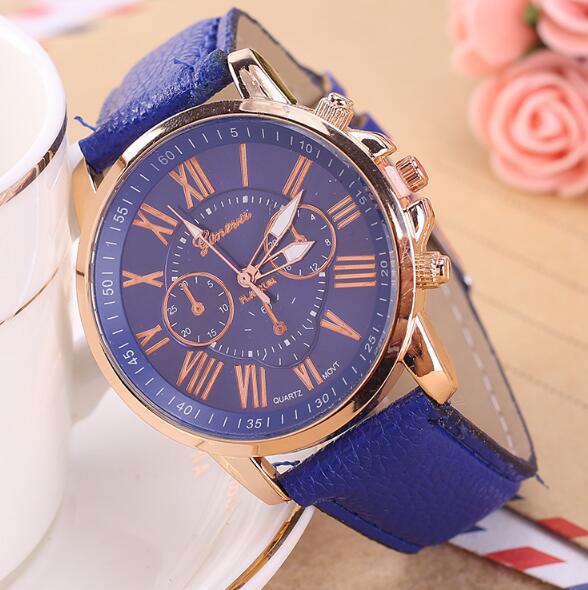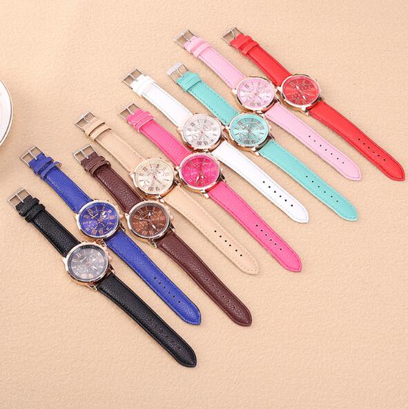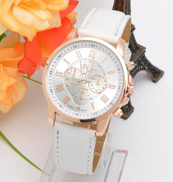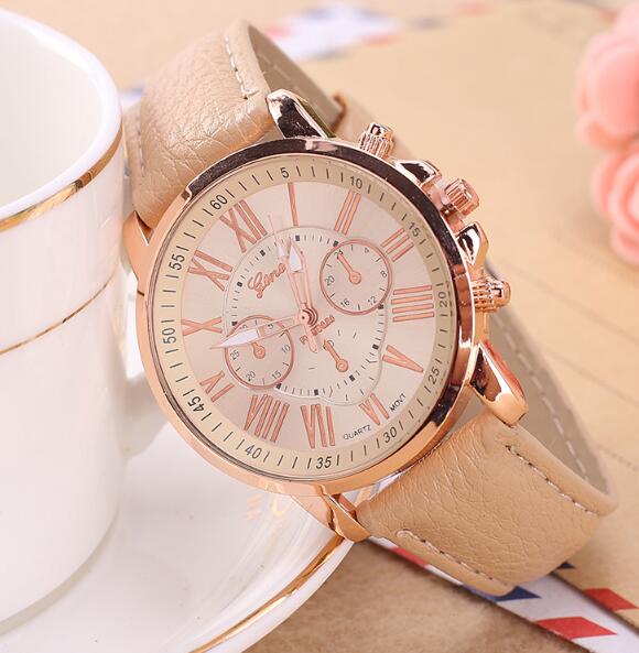A derivative of the explosion in Geneva on behalf of the spot gold shell Beige three eye literal Rome digital Leather Strap Watch0