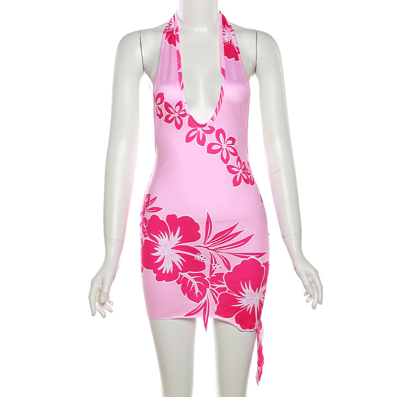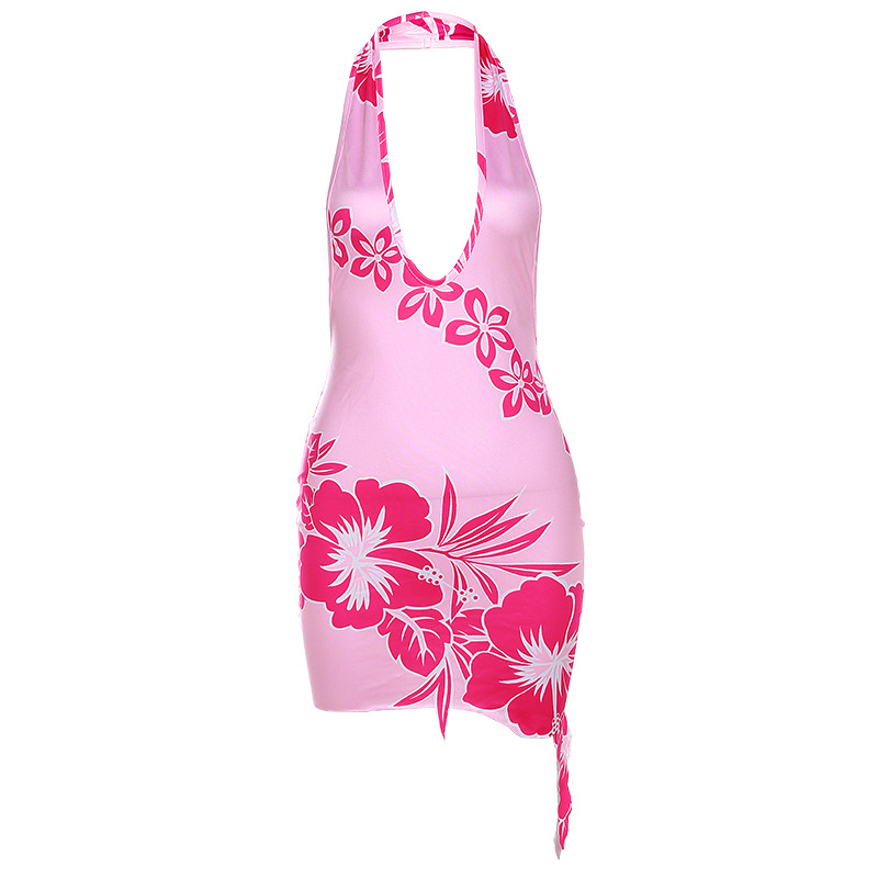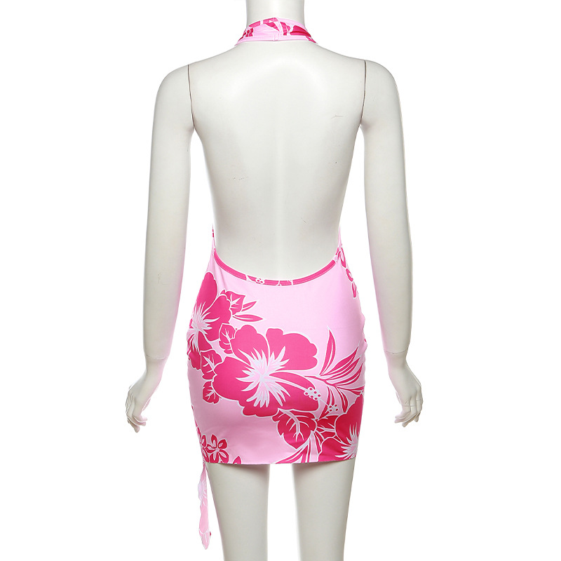 3D Printing Halter Backless Deep V-neck Slim-fit Sheath Dress