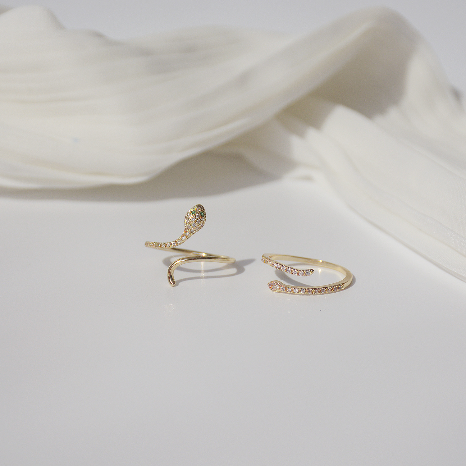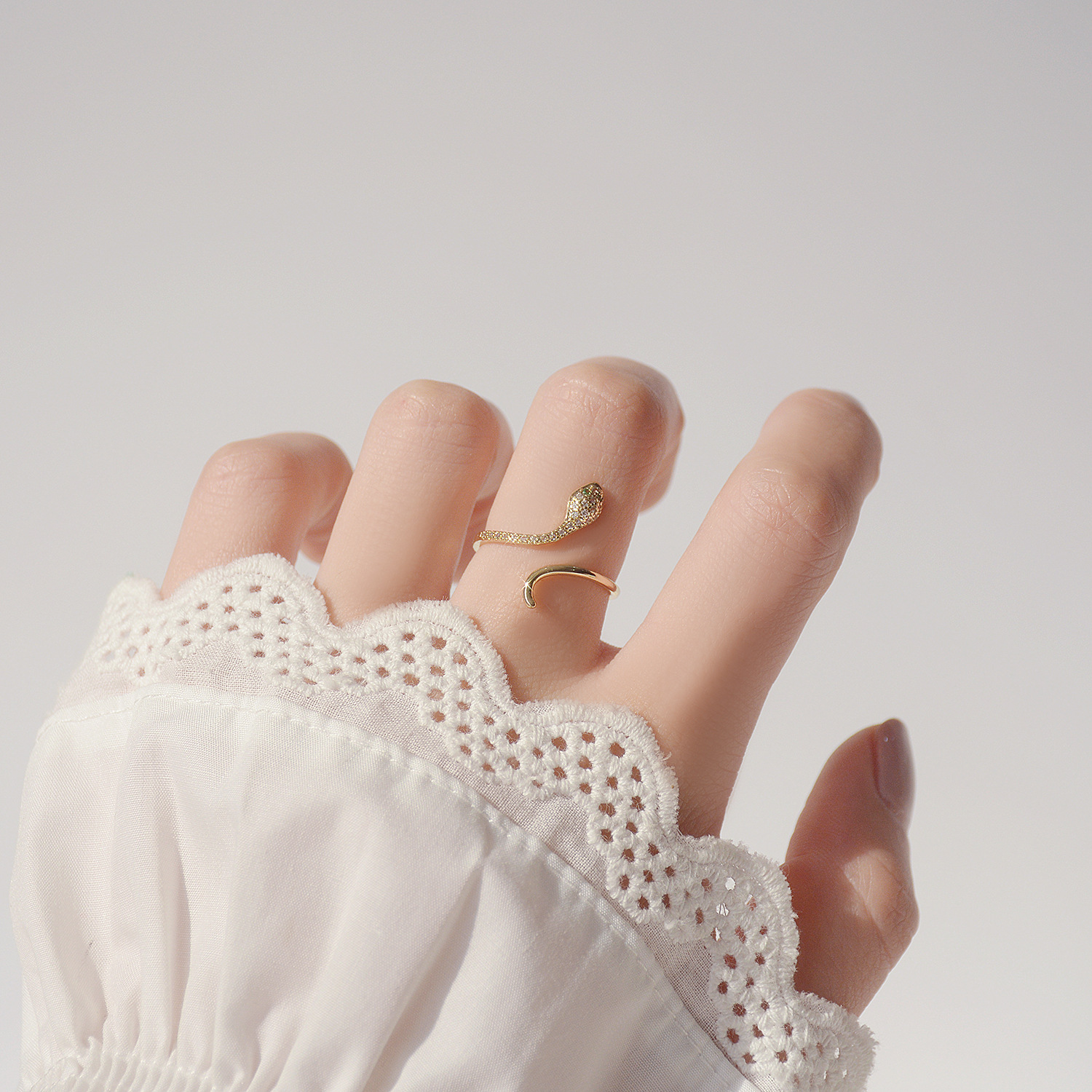 South Korea's Dongdaemun design sense micro-inlaid zircon snake shape temperament personality ring fashionable open ring