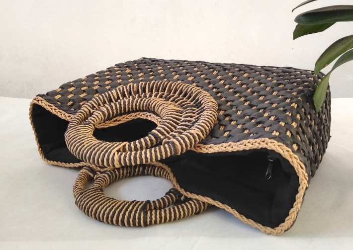 Material: weaving Top mouth width: 39cm height: 25cm thickness: 12.5cm10cm in heightBags are hand-woven, and there is an error of 1 ~ 3cm in manual measurement.Note: Avoid moisture, if it is wet, just dry in the sun;Wipe dry with a wet towel