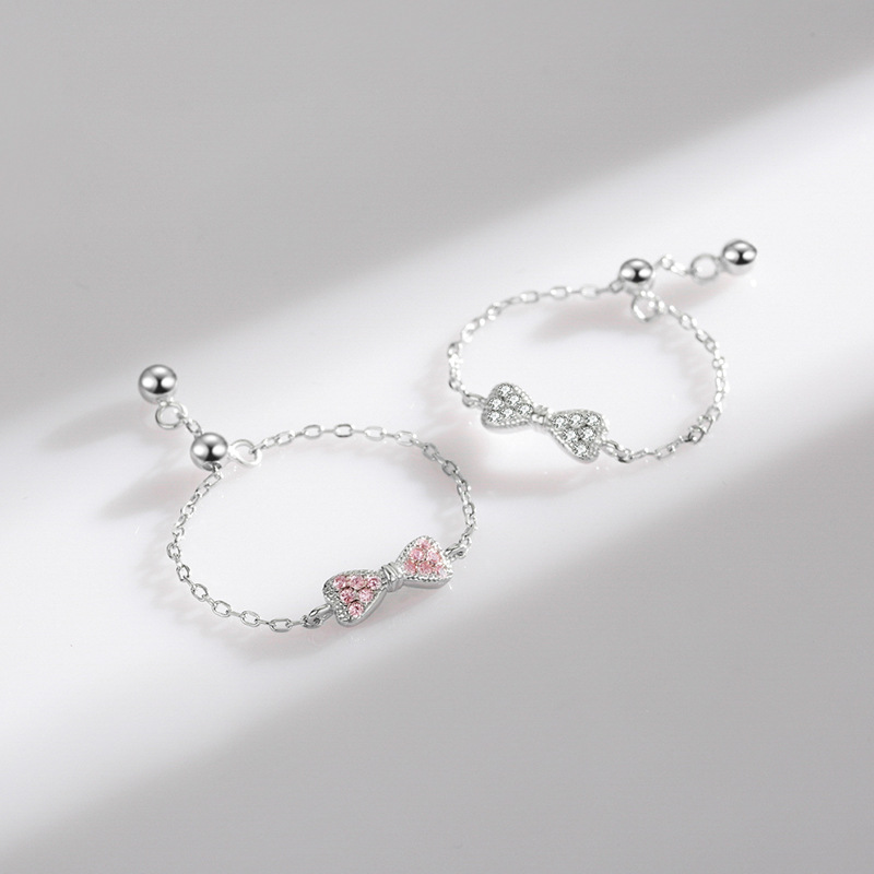 Product information:Type: Ring Color: white, pink Applicable population: Female Size: adjustable opening Style: Women's Material: 925 silver Shape: Bow Popular elements: Bow Style: Cute