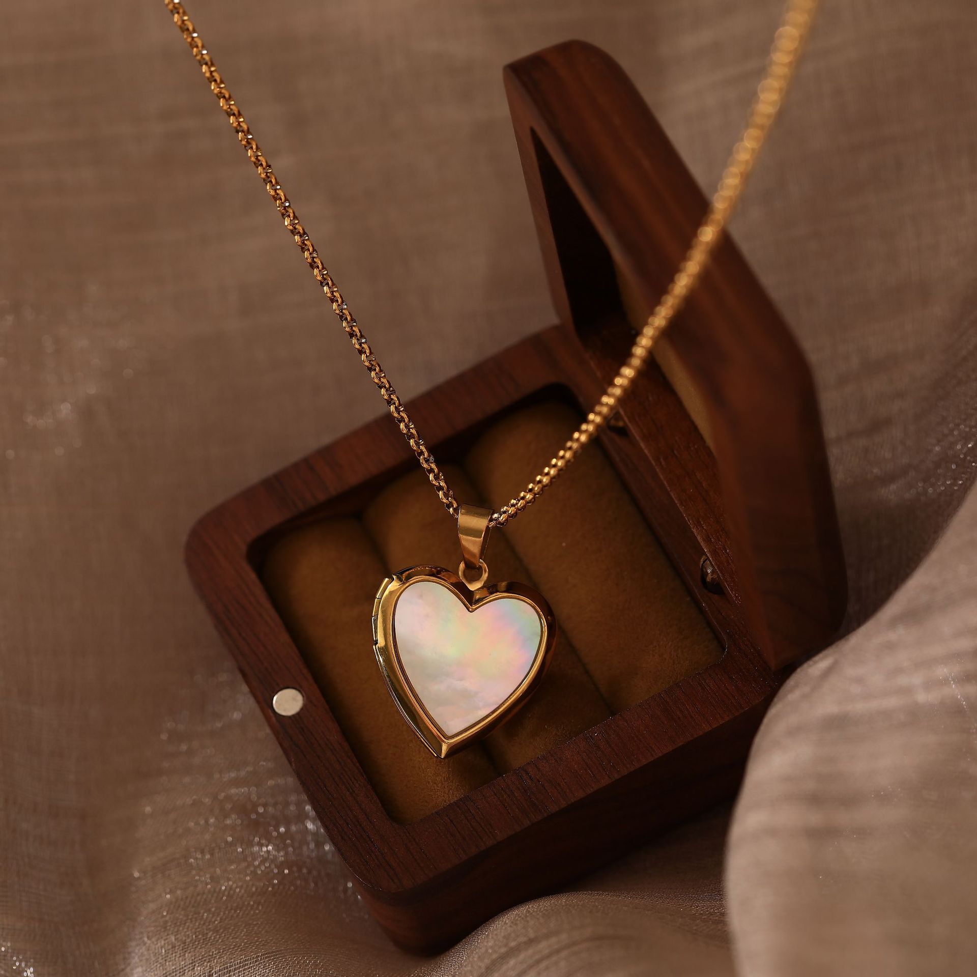 Material: Golden heart-shaped shell: Titanium steel vacuum plated 18K gold