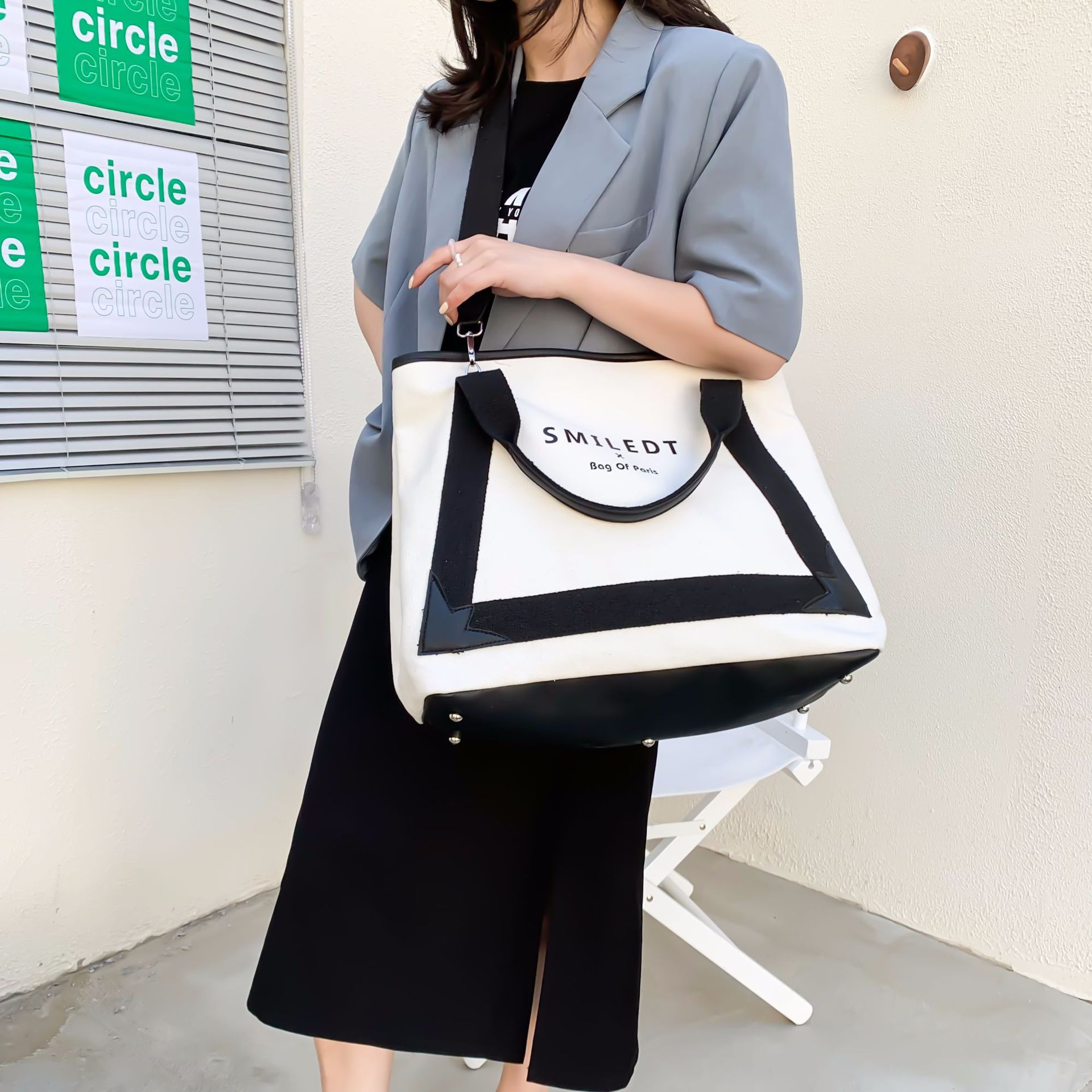 Use: One shoulder/diagonalFabric: canvasNet weight: 0.32 KGSize: Width :42CM height :33CM bottom thickness :11CMStyle: Street style