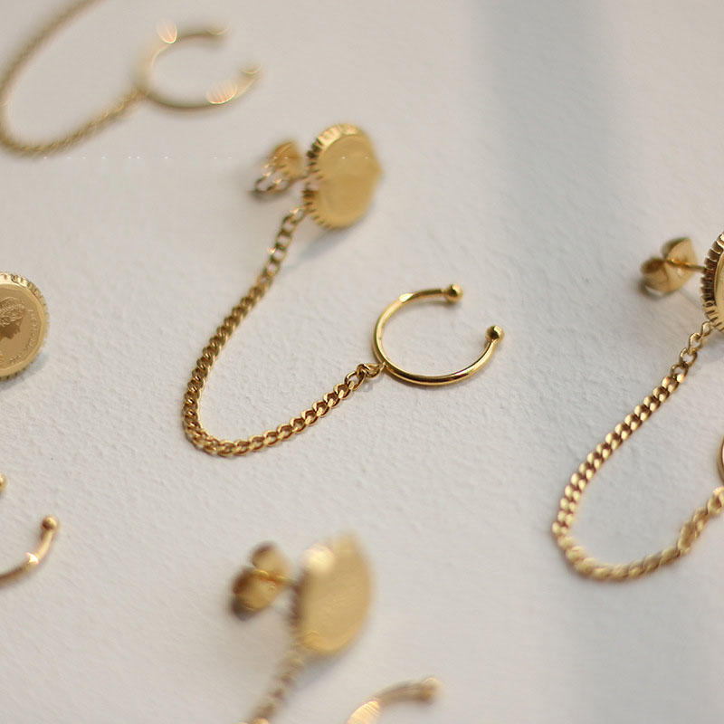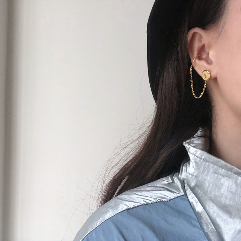 European And American Simple Spring Coin Ear Clip Tassel Chain Earrings Earrings