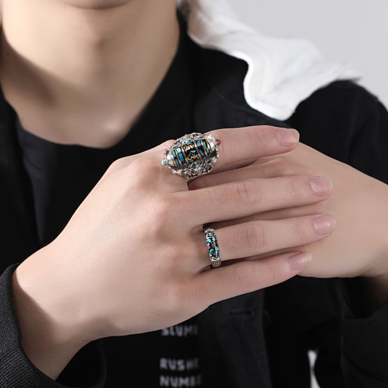 Product information:Type: Ring, ring Color: six words mantra Dapeng bird Tibetan bead ring Material: Silver Size: adjustable opening