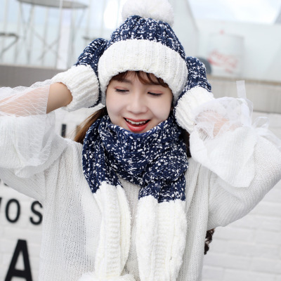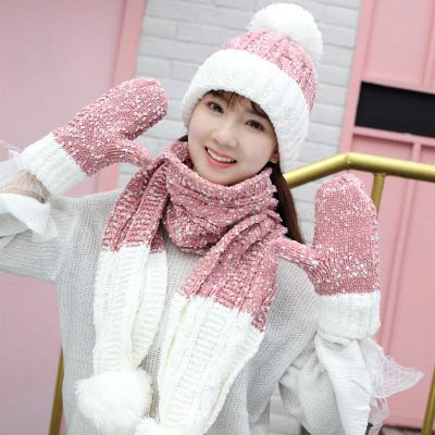 Product information:Product category: knitted hatApplicable gender: femaleMaterial: woolPattern: color gridColor: red, black, white, navy blue, pink, gray, wine redSize: M (56-58cm)Packing list:Gloves * 1 pairHat * 1Scarf * 1
