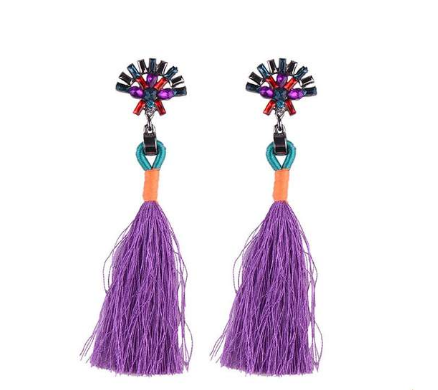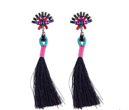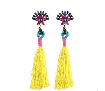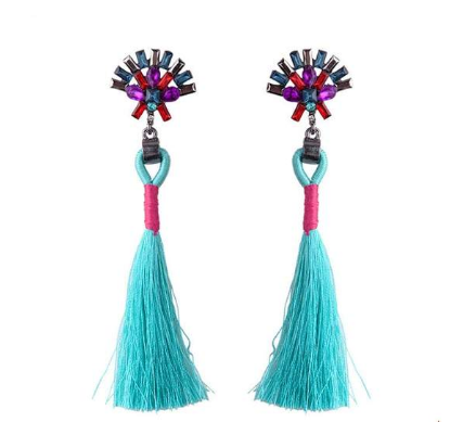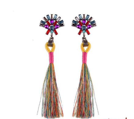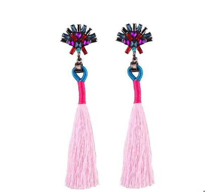European and American fashion temperament bride earrings simple hand-studded color tassel long earrings