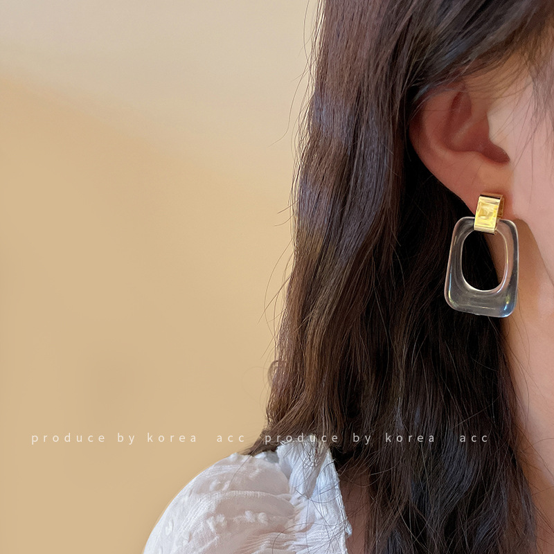 product information:Material: AcrylicStyle: European and AmericanStyle: Women'sModeling: GeometryColor: Silver Needle. Transparent color, silver needle. maroonPopular elements: metal, geometryPackage:Plastic earrings X1