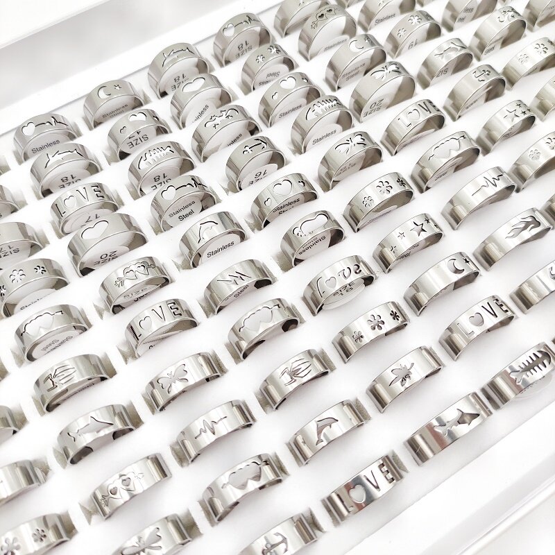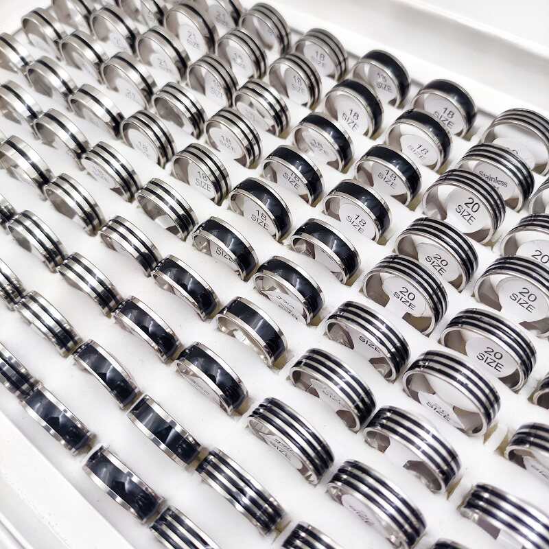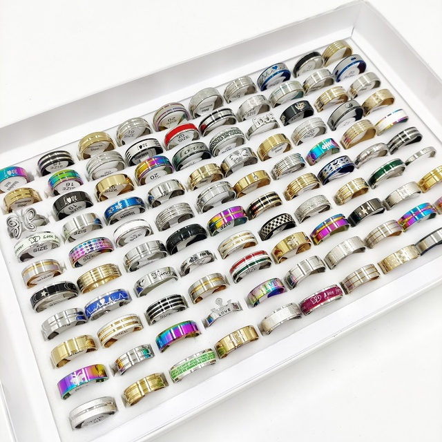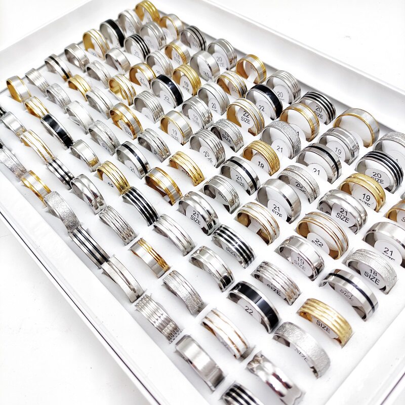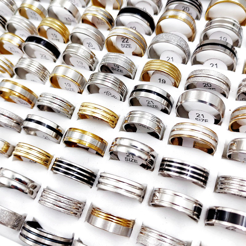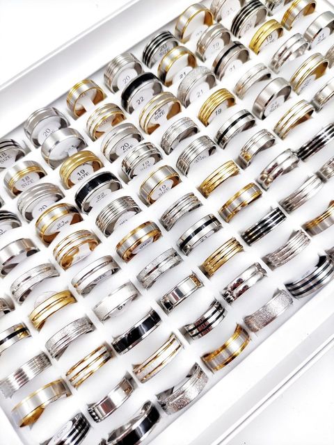Product Details:Material: Stainless steelStyle: as picturedColor: silver, gold, blackSize: 16mm-21mm US size 6-11Quantity: 20pcs * Ring (Random Size and Style)Packing: OPP bag (no box)Packing list:Ring set*1set(20pcs)