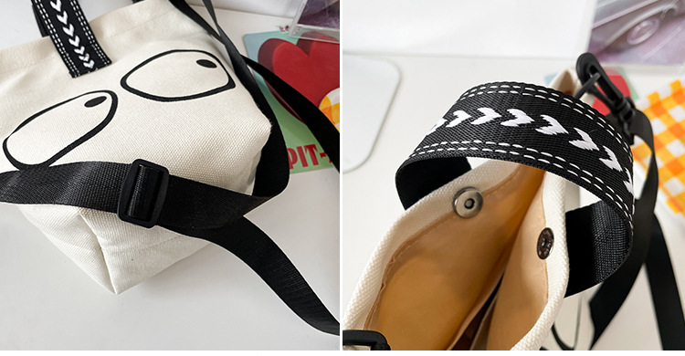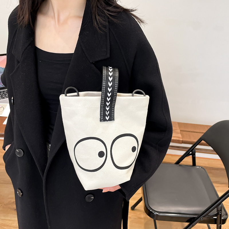 Product information :Color: whiteMaterial: canvasPopular elements: printingLuggage shape: cylindricalOpening method: magnetic buckleInternal structure of bag: zipper pocketSize Information:Size: 12x12x23cmPacking list:Canvas bag *1