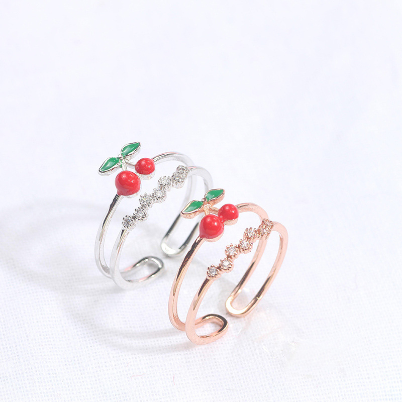 Material: ZirconShape: CherryPackaging: Individually packedInlay material: zirconColor: rose gold, silverSize: Adjustable opening