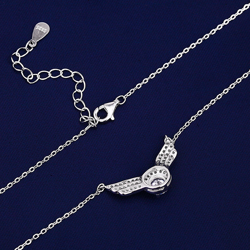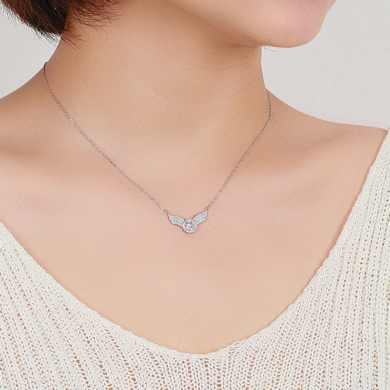 Temperament simple full diamond necklace 925 silver clavicle chain angel wing pendant with certificate Mozanstone necklace jewelry