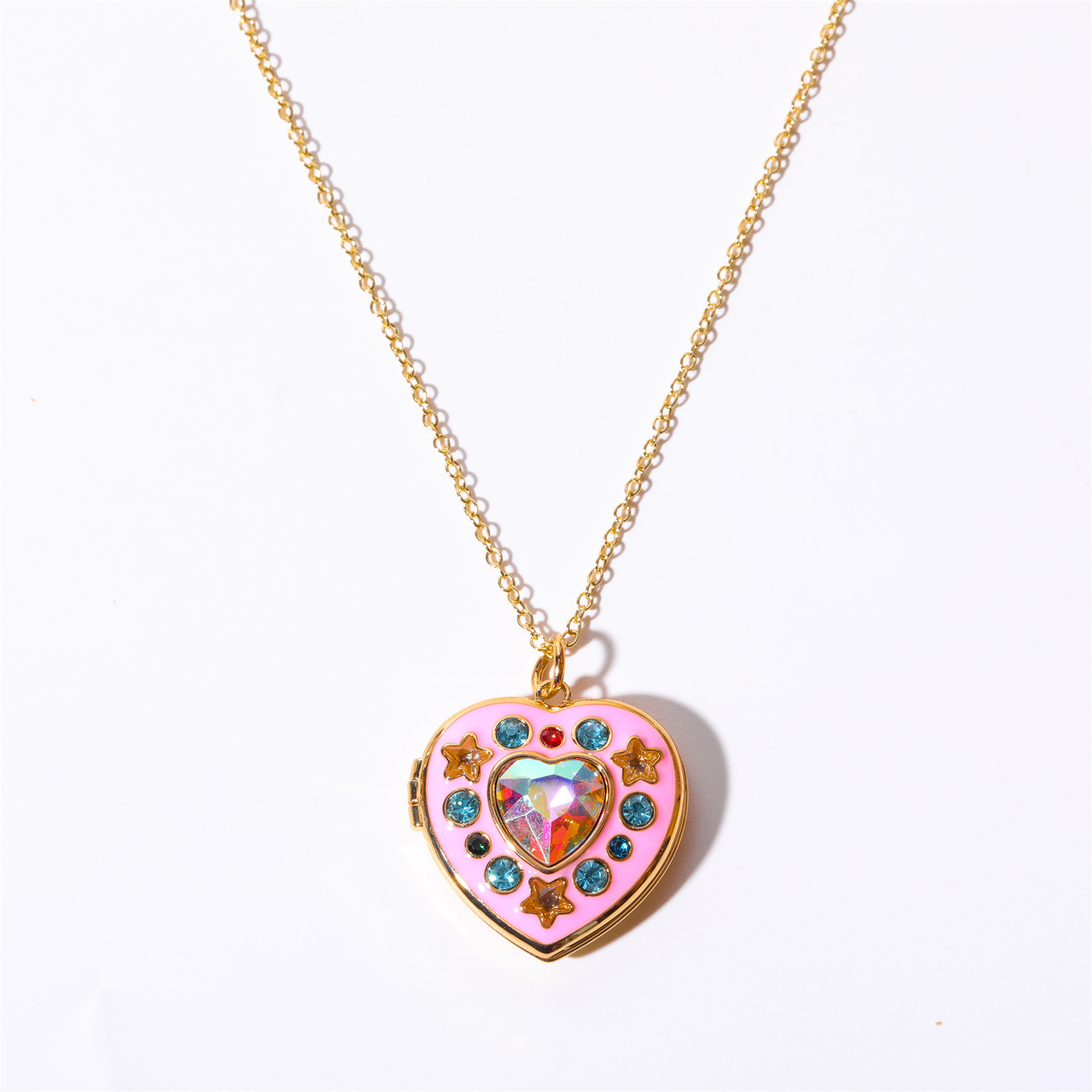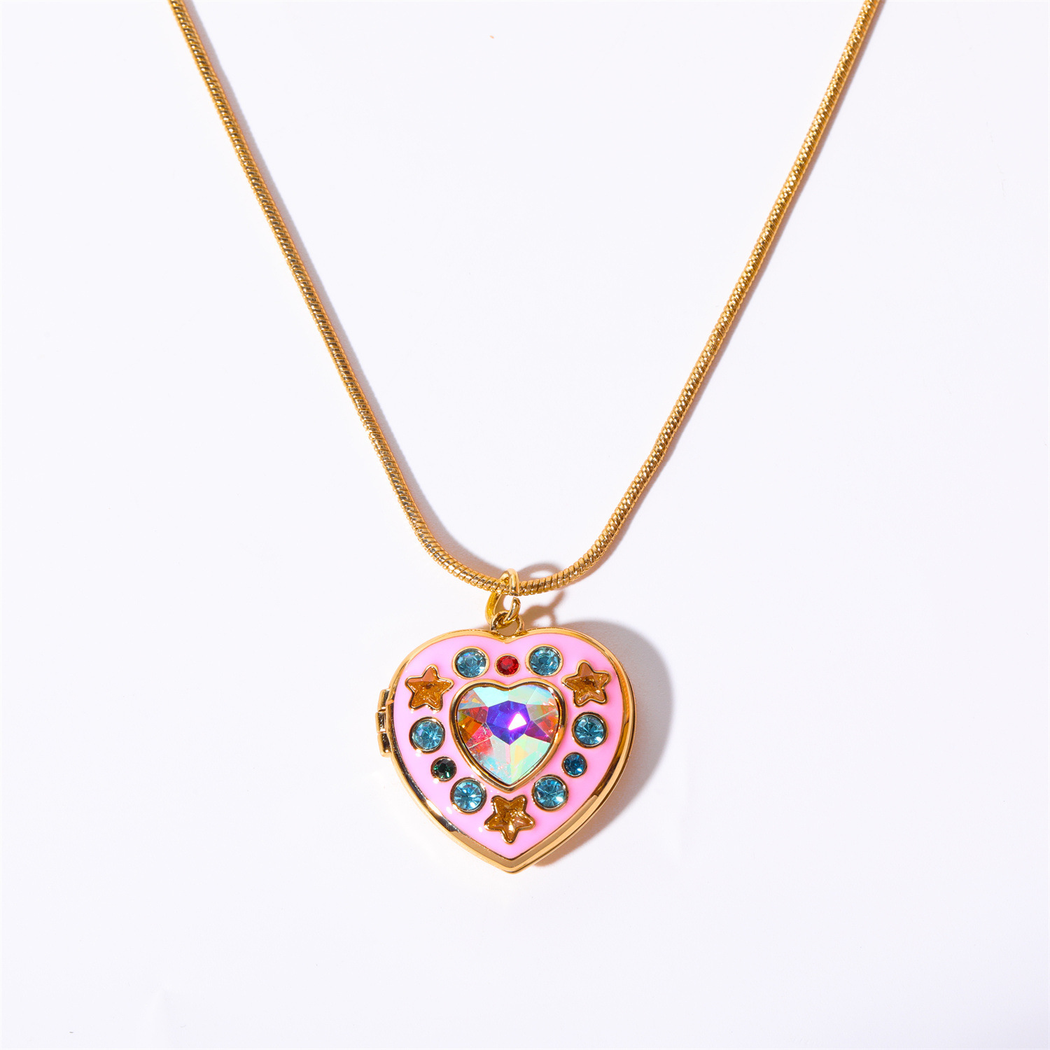 Color: golden love (pendant -O chain), golden love (snake bone chain+pendant), colored diamond pentagram (green), colored diamond pentagram (purple).